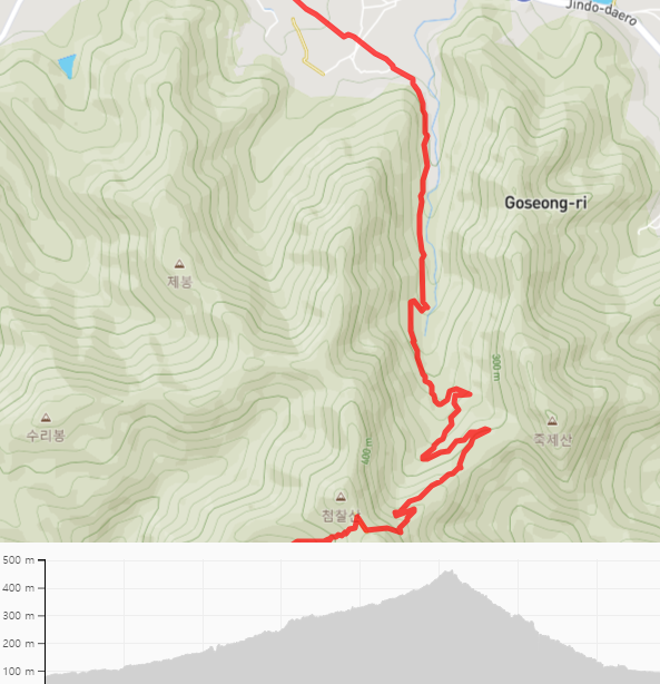 중간에 죽제산 산림욕장의 시설을 만나기는 하지만 우리의 여정과는 별 관련이 없다.