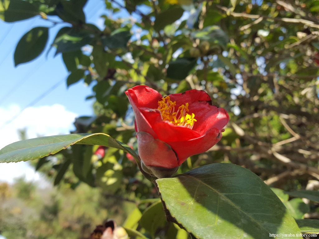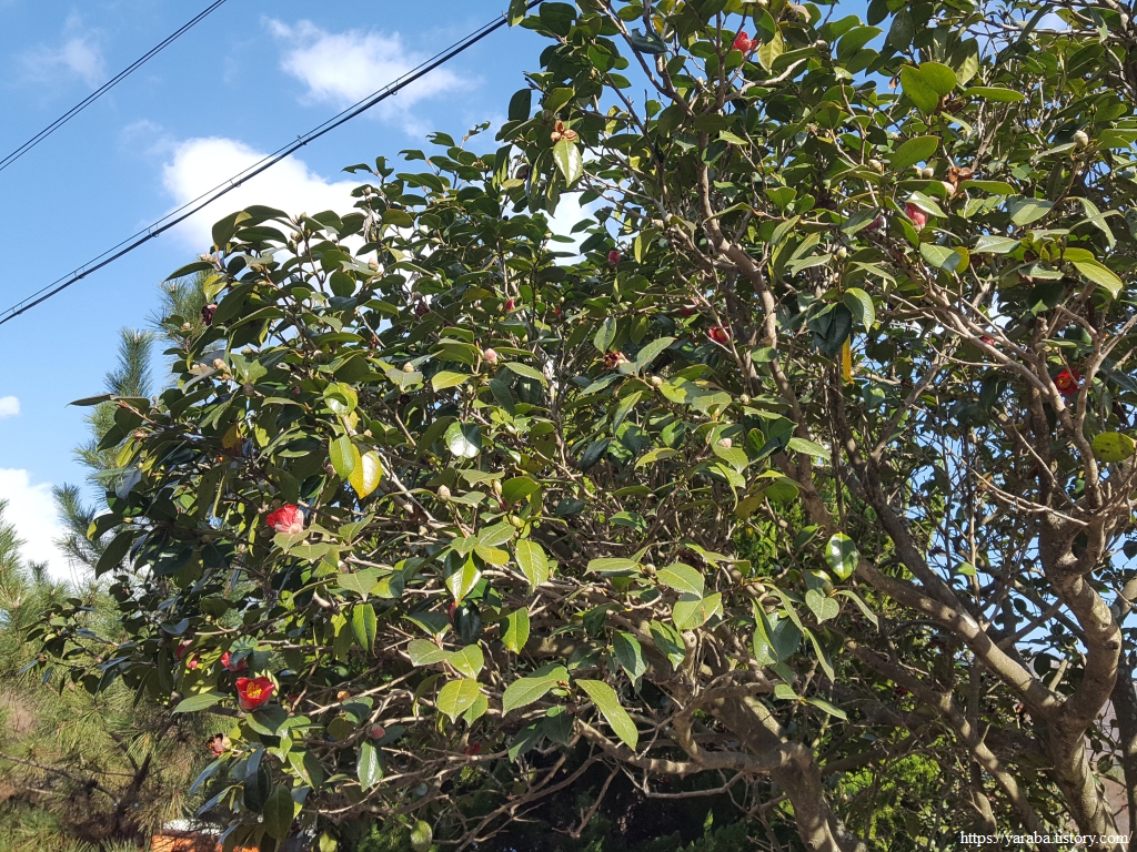 빨라도 12월 말에 등장할 동백꽃이 11월 말인 지금 벌써 붉은 자태를 뽐내기 시작했다. 진도는 벌써 봄인가?