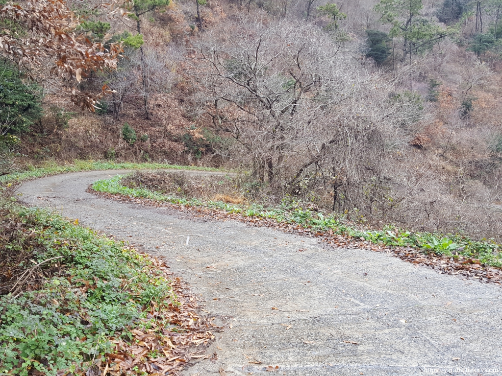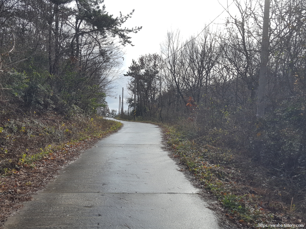 죽청마을에서 매실로 도로로 오르막을 올라온 길은 농로로 올라온 원래의 서해랑길과 만나서 봉호산 자락의 매듭재 고개를 넘기 시작한다.
