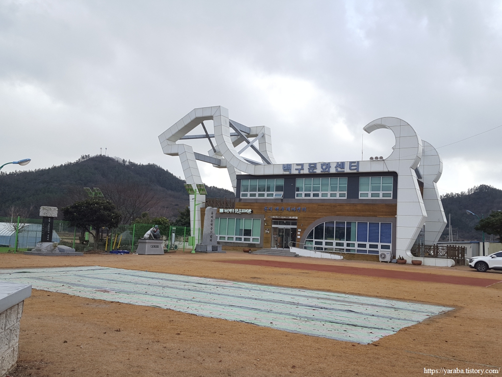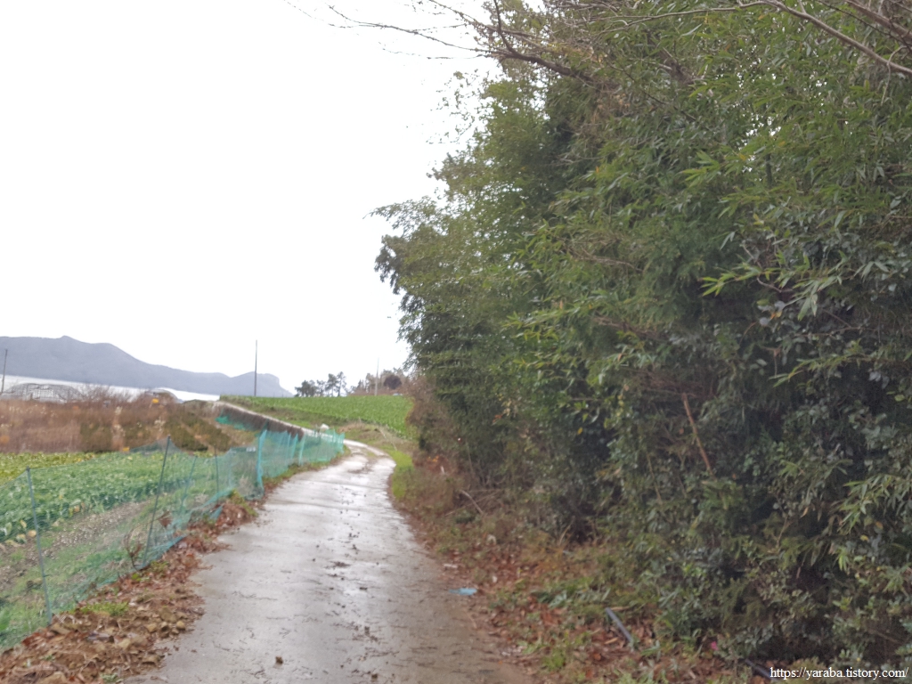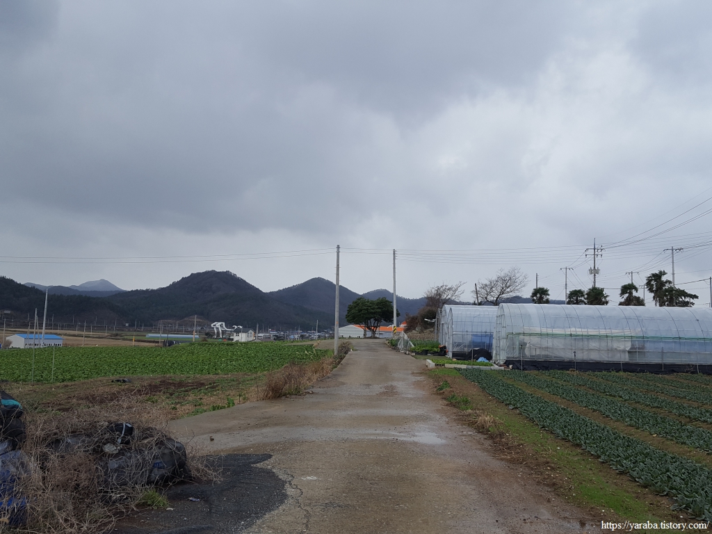 이른 아침부터 흐리고 서늘했던 날씨는 좀처럼 개이지 않고 오히려 바람이 더 강해졌다. 옥대리 버스 정류장에서 잠시 바람을 피하며 휴식을 취했지만 손은 시리고 몸은 으슬으슬하다. 다음 겨울 걷기에서는 따뜻한 손난로를 준비해야겠다는 생각이 들었다. 옥대리를 떠나 의신면 읍내로 향하는 길, 시야에는 읍내와 함께 멀리 백구 모양의 의신백구 작은 도서관이 보이기 시작한다. 진도 대파와 배추, 봄동이 이어지던 들판에서 푸릇푸릇 시금치를 만나니 정말 반갑다. 시금치를 조파(줄뿌림)하거나 산파(흩어 뿌림)해서 키우는 것만 보아 왔는데 이 밭에서는 하나씩 정성스럽게도 심어 놓았다. 이렇게 점파 해서 키우면 힘은 더 들지만 상품성이 좋은 시금치를 얻을 수 있다고 한다.