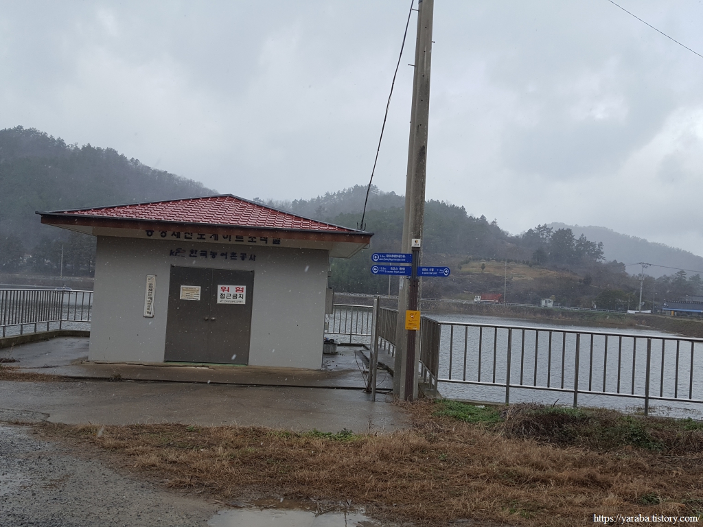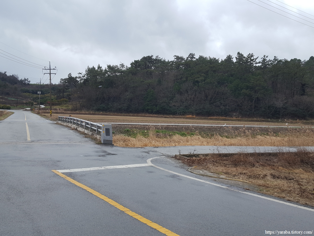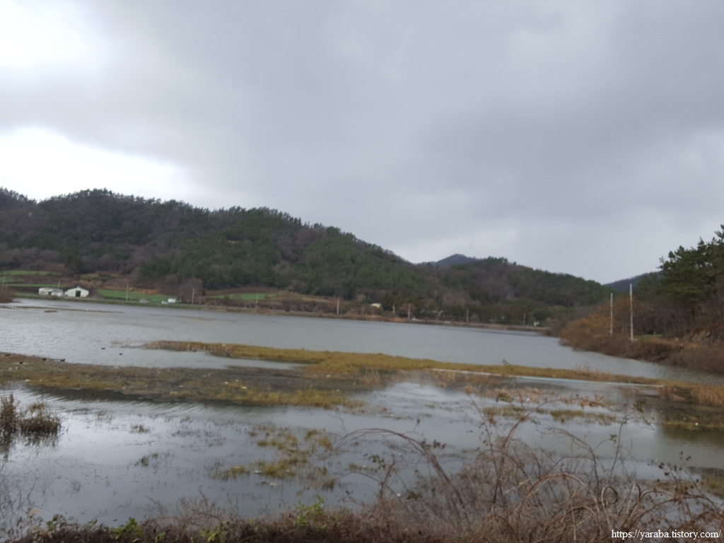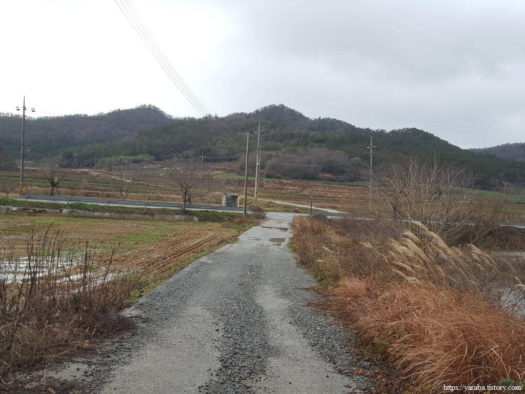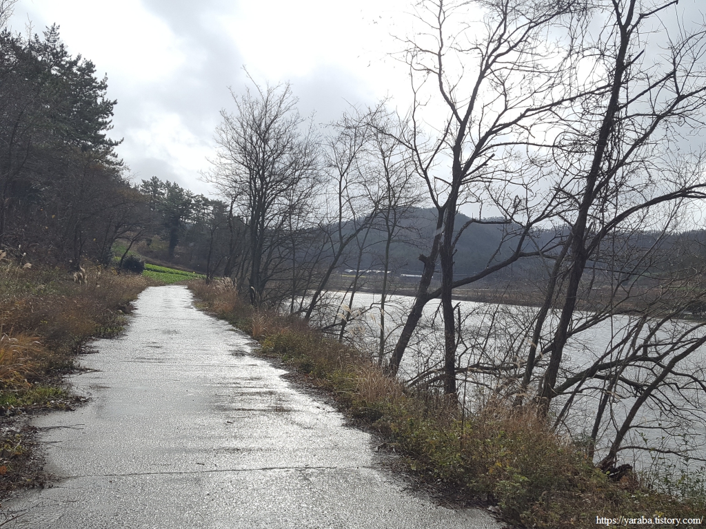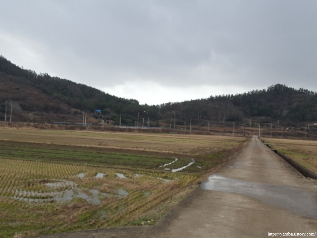비와 눈이 섞여서 내리는 것을 진눈깨비라 부르는데 들판길에서 싸늘한 바람과 함께 몰아치는 진눈깨비를 피할 방법이 없다. 송정지 동편 길을 따라 남쪽으로 내려간다.