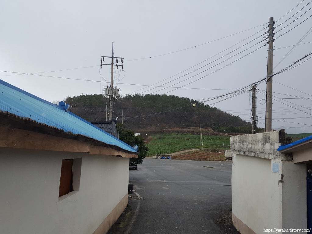 비가 눈으로 바뀌고 서늘한 바람의 한기는 옷 속을 빠고 든다. 잠시 바람이라도 피하고 싶어서 마을을 통과하며 둘러보지만 마땅한 곳을 찾기가 어렵다. ㅠㅠ 지금은 계속 걷는 방법밖에 없다.