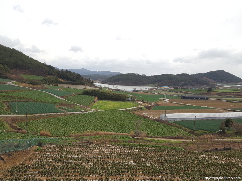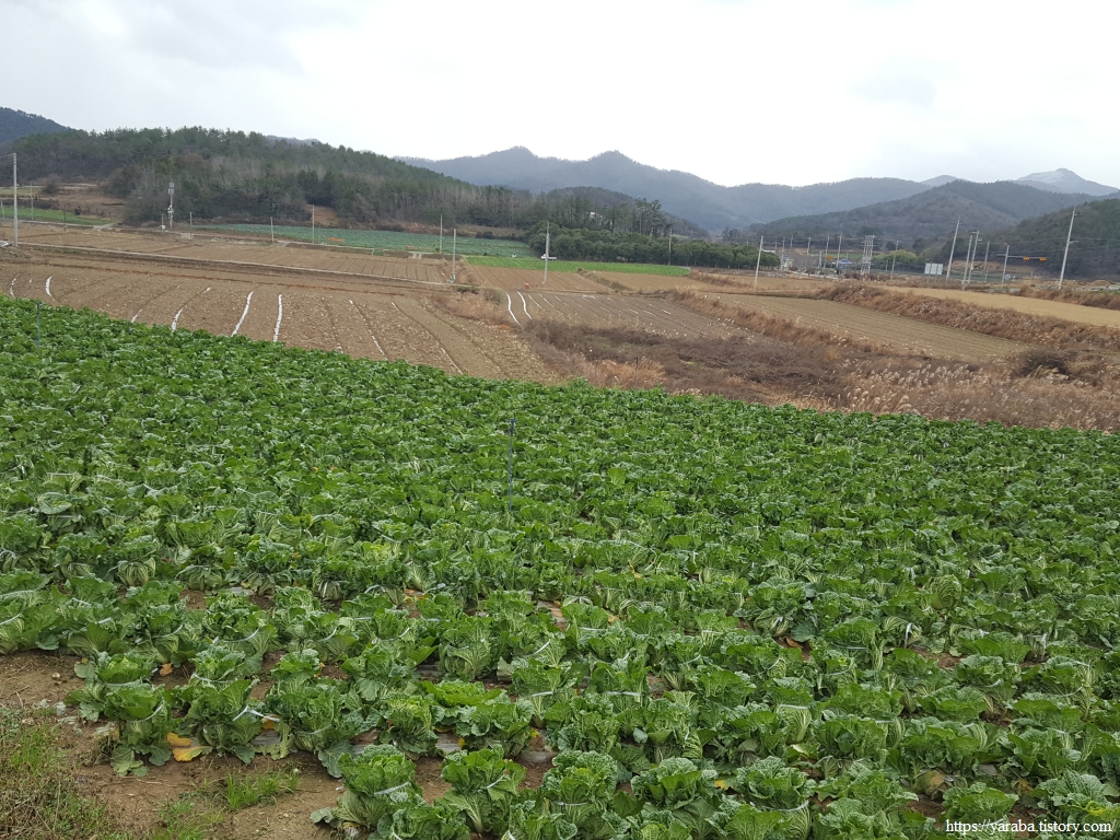 이곳 들판은 12월의 한복판이지만 논이 아닌 곳은 대부분 싱싱한 대파와 배추들로 푸른 들판이 이어진다.