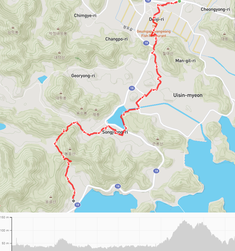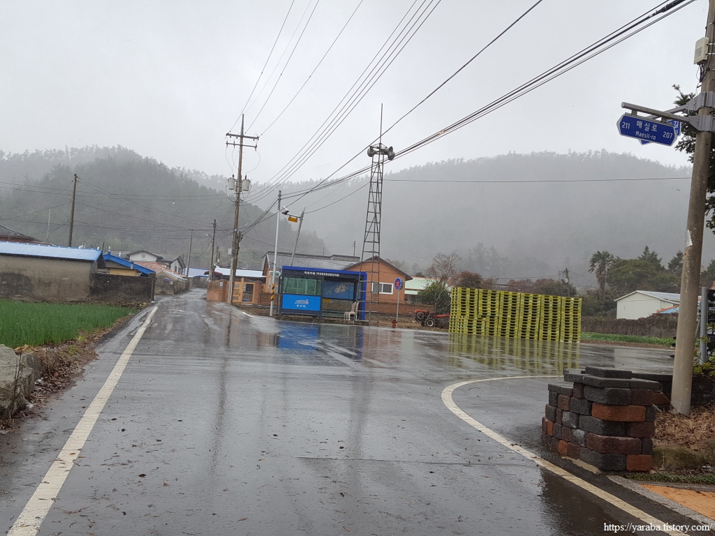 1일, 6일 5일장이 열리는 의신면 오일장을 기대했는데 비도 오고, 날씨가 쌀쌀한 까닭인지 장이 서질 않았다. 따뜻한 국물을 가볍게 먹을 수 있는 식당도 기대했지만 서해랑길 코스 인근에서는 찾을 수 없었다. 하는 수 없이 골목길을 통해 읍내를 빠져나간다.