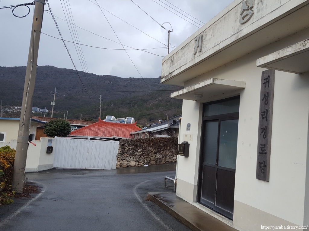 돌담이 아름다운 귀성마을의 골목길을 통해서 큰길로 나간다. 앞바다에서 고기가 많이 잡히고 해산물이 풍부해서 황금리라고 불렸다는 마을이다. 그래서 귀성리의 마을 이름은 귀한 땅이라는 의미가 담긴 모양이다. 아리랑마을관광지와 한옥민박, 그리고 여귀산 자락에는 국립남도국악원도 자리하고 있다.