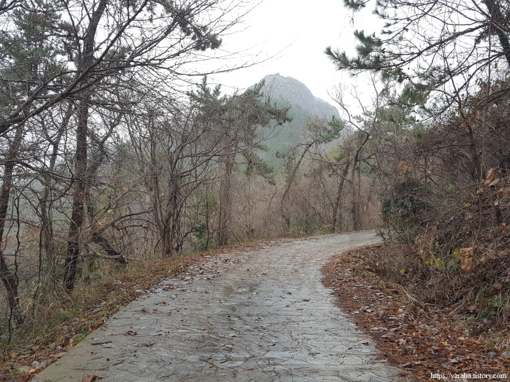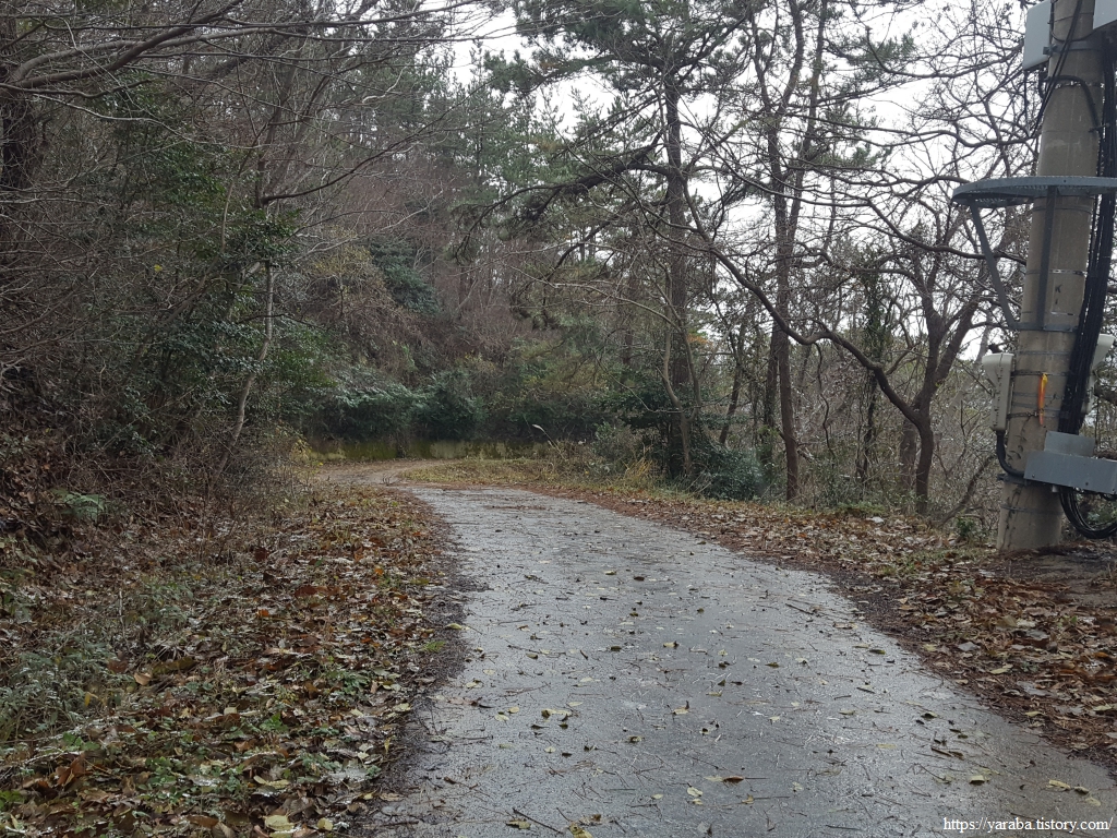 임도 따라 남쪽으로 내려가는 임도는 오봉산(201m) 등산로와 이어지는데 등산로 갈림길에서 우회전하여 마을로 내려간다.