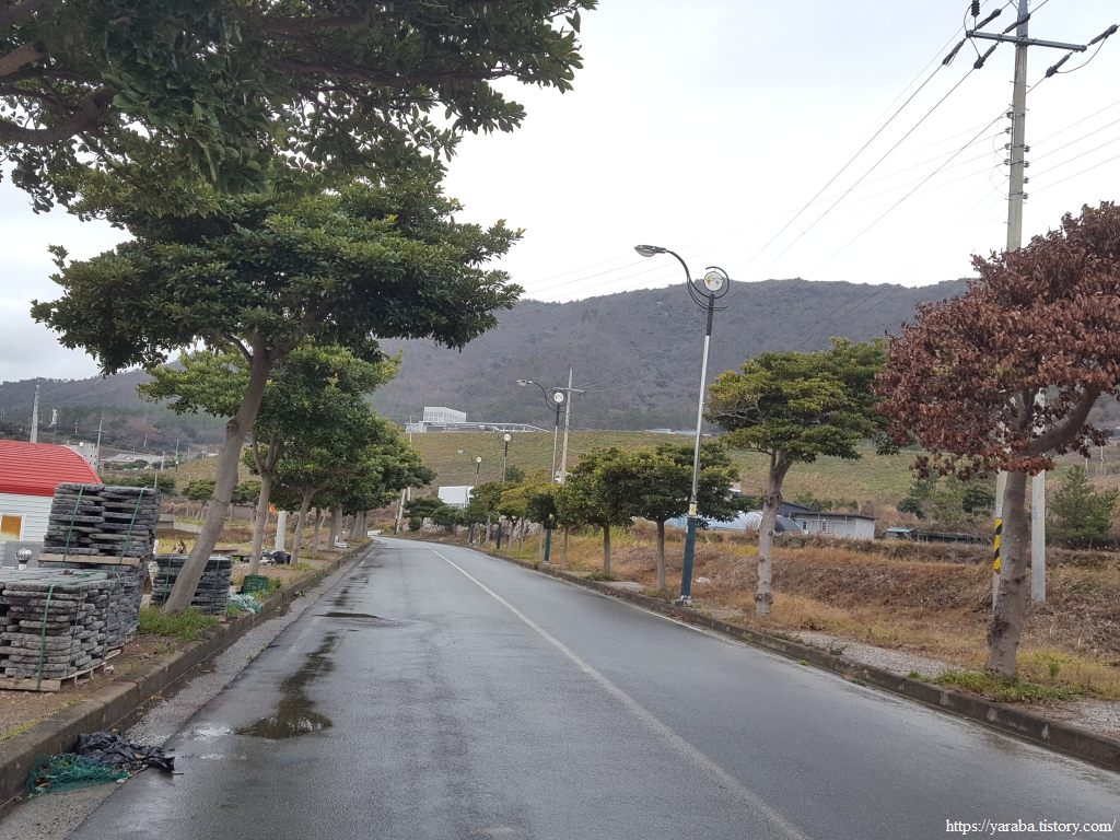길은 죽림어촌체험마을 안내소 앞에서 우회전하여 서쪽으로 죽림마을을 향해서 이동한다.