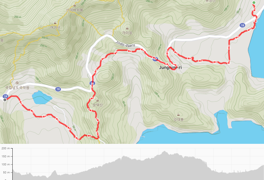 길은 어느덧 죽림마을을 뒤로하고 18번 국도 진도대로로 진입했다. 갓길이 넉넉해서 부담 없이 걸을 수 있는 길이었다.
