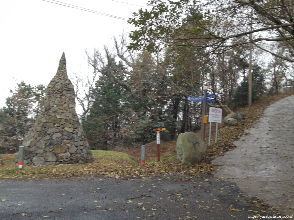 여귀산 돌탑길 끝자락, 탑립마을로 들어가는 교차로에서 서해랑길은 도로를 벗어나 보덕산 임도로 진입한다.