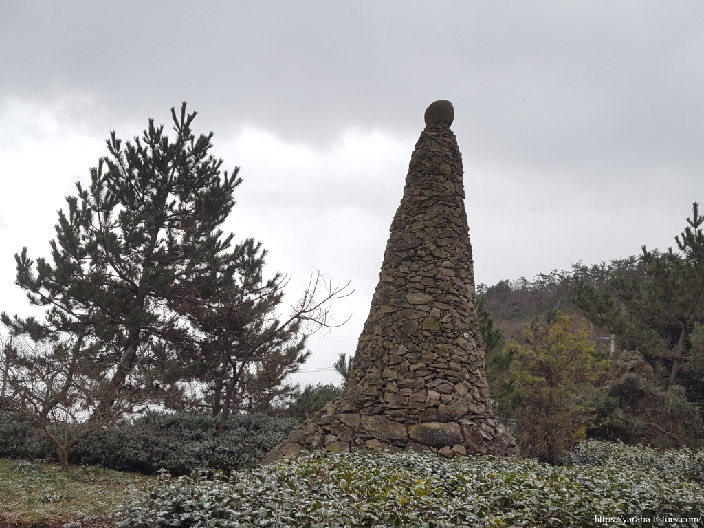 시비와 독특한 탑들이 세워진 이곳은 여귀산 돌탑길이었다.