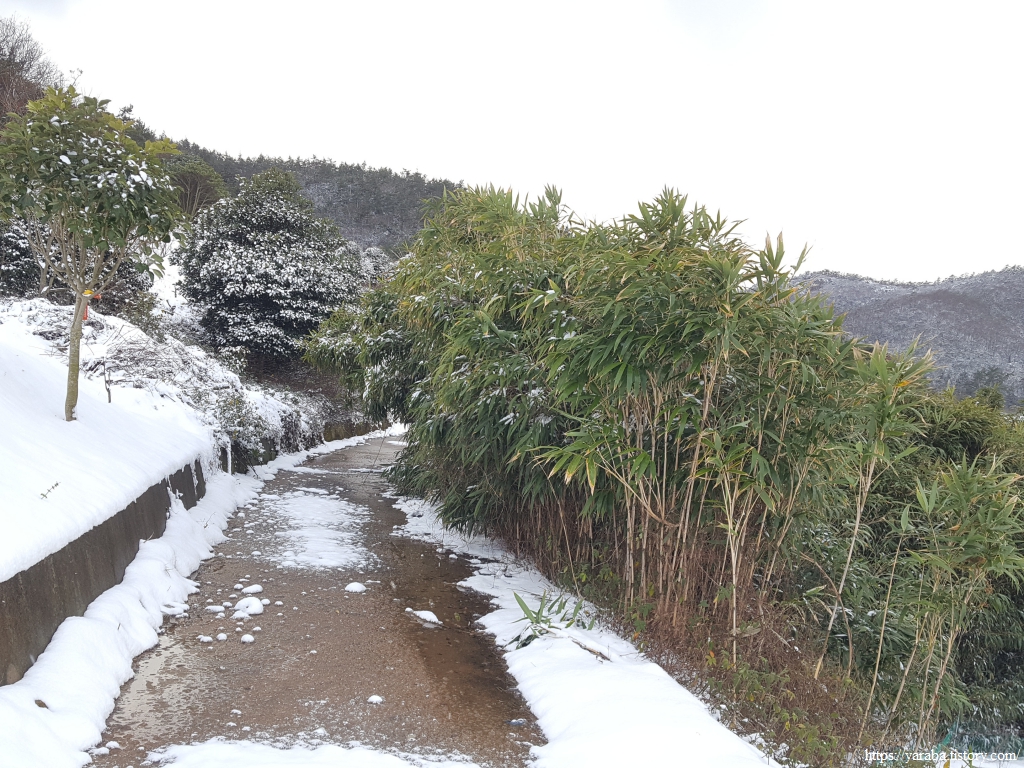 남선마을 외곽을 돌아가는 들길은 수묵화 한 폭을 보는 것 같다. 조릿대 숲과 하얀 눈이 어우러진 포근한 그림이다.
