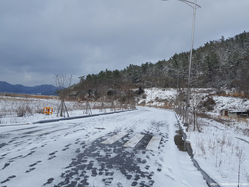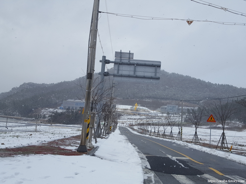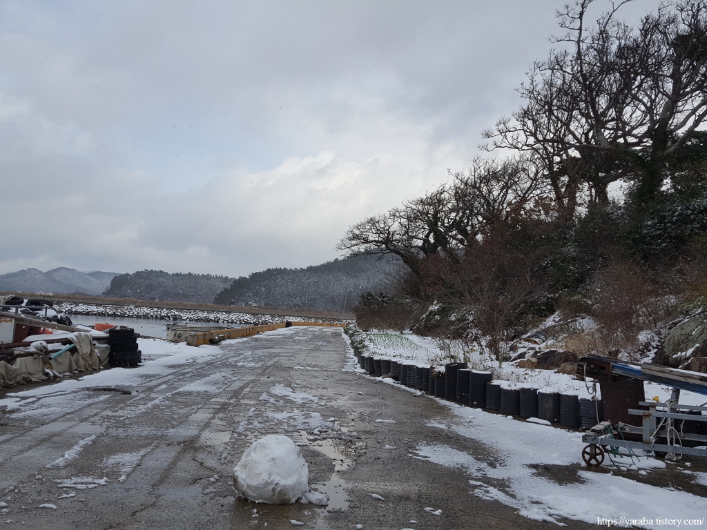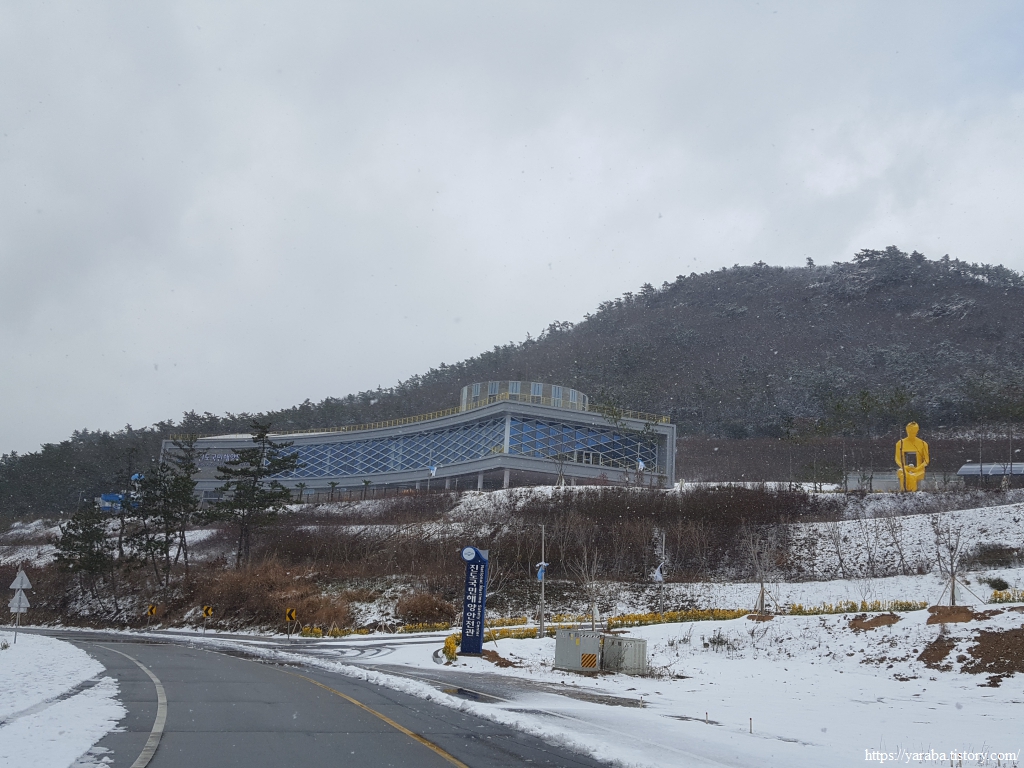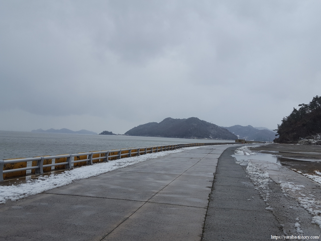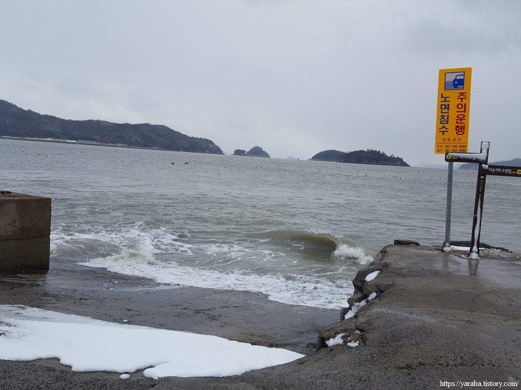서망마을 인근으로는 여러 부지들이 조성되어 한창 개발 중인데 진도항 배후지 조성 사업이라고 한다. 2023년 12월 문을 연 진도국민해양안전관도 이곳에 자리하고 있다. 세월호 사고 이후 10년 만에 생긴 시설로 생존수영, 익수자 구조법, 심폐소생술 등 해양 안전과 각종 재난 대응 교육을 위해 설립했다고 한다. 오후가 되어서도 눈발은 그칠 줄을 모른다.