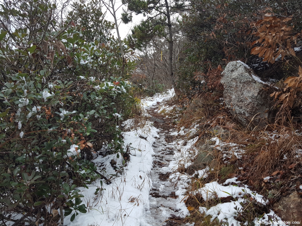 산악회 일행들이 앞서간 덕택일까? 숲길에 쌓인 눈은 모두 잘 다듬어져 있었다.