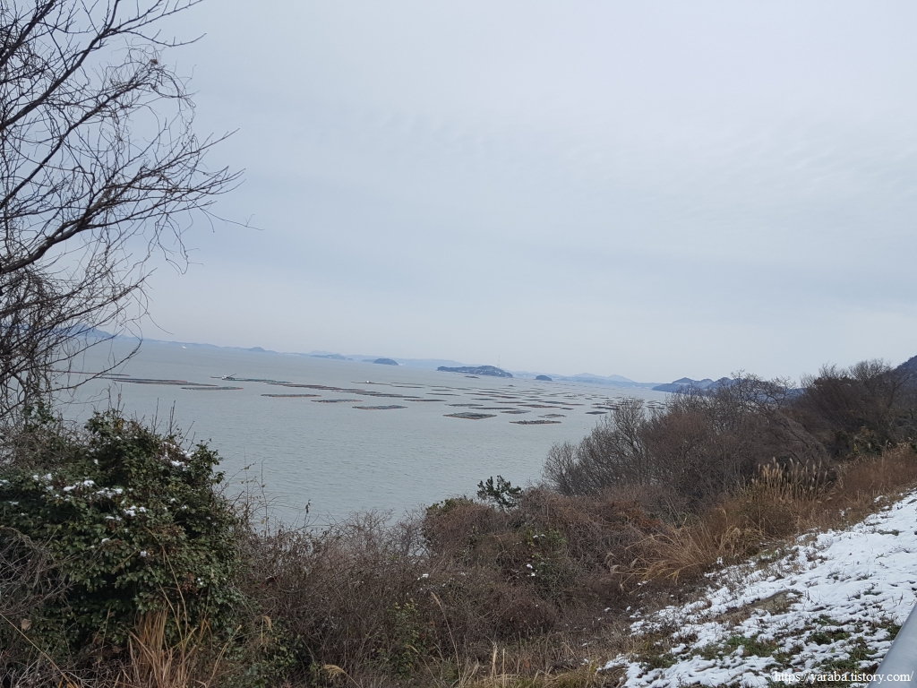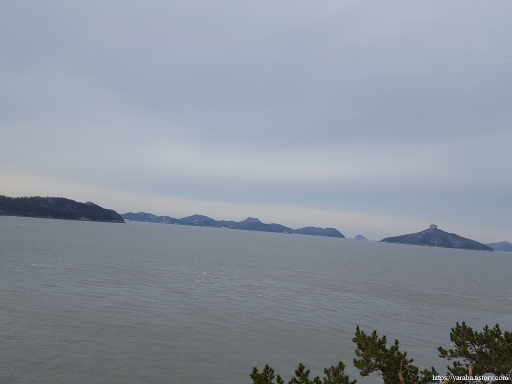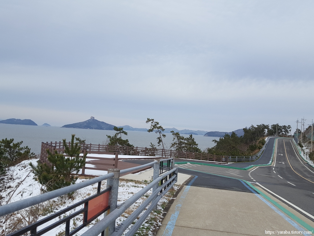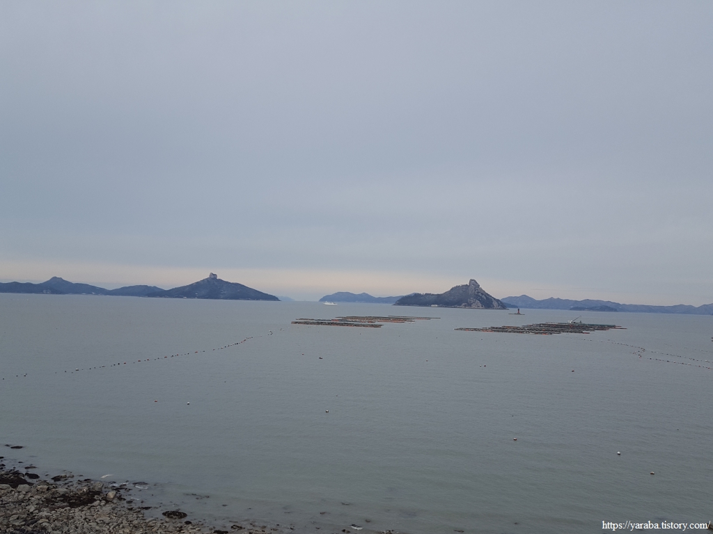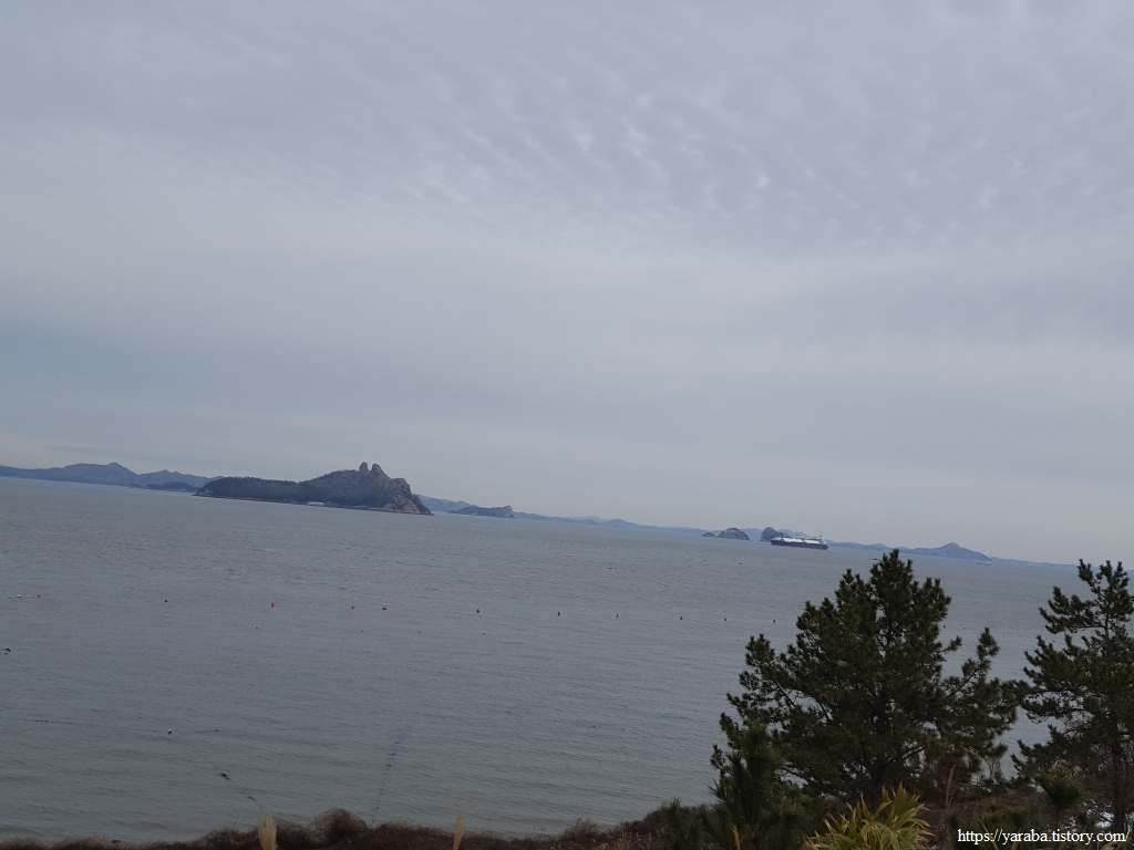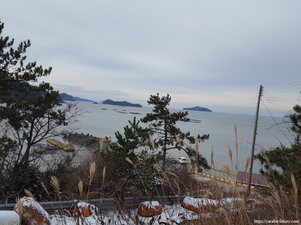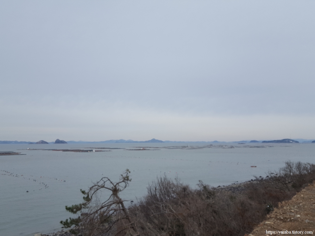 해안길에서 보는 바다 풍경은 가사군도의 섬들과 근해에 설치된 대규모의 전복 양식장이다.