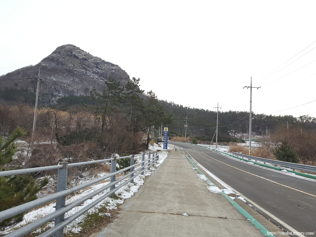 길 위의 진돗개 발자국은 우리가 금노항에서 2.5Km를 걸어왔다고 말해준다.