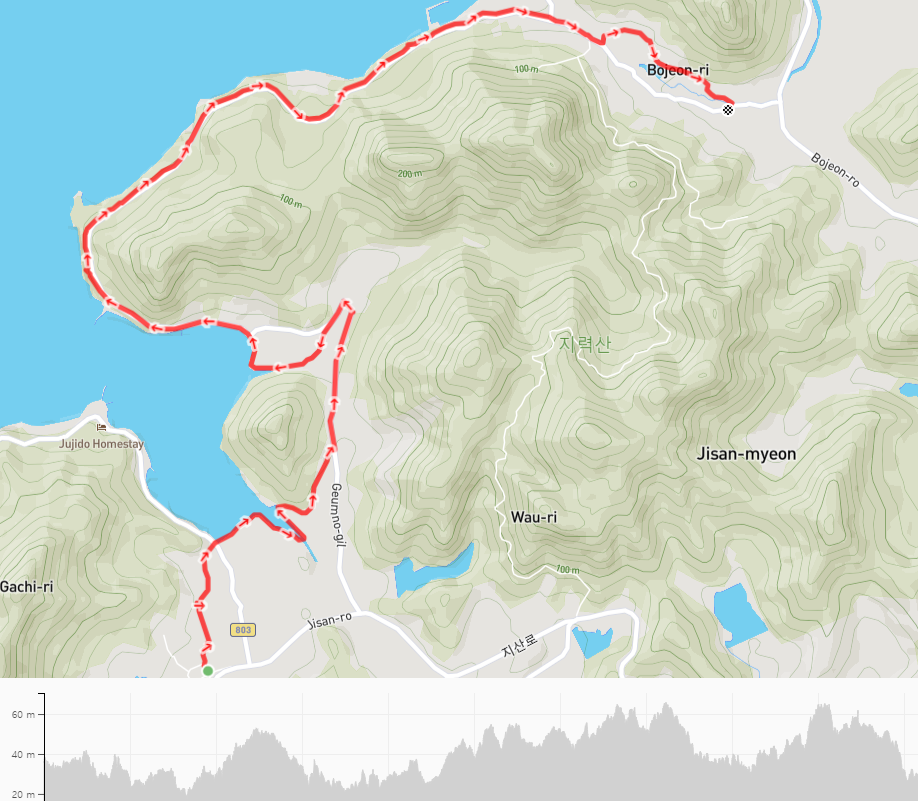 해안으로 참전복양식장을 볼 수 있었던 참전복로는 계속 해안으로 이어지지만 서해랑길은 해안을 벗어나 보전 마을 안으로 들어간다. 진도 낙원해안로도 안녕이다.