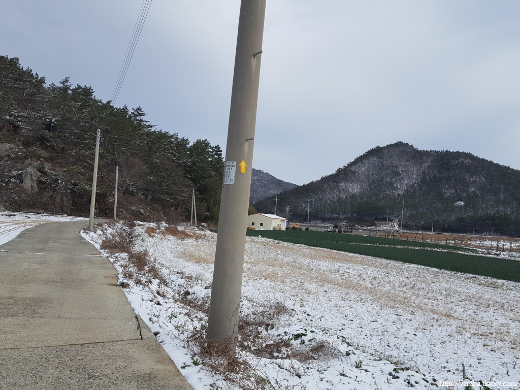 들판에는 지난 이틀간 내린 눈이 아직 남아 있지만, 길은 대부분 눈이 녹아서 일부 웅덩이 구간을 제외하면 걷기에 불편함이 없다.