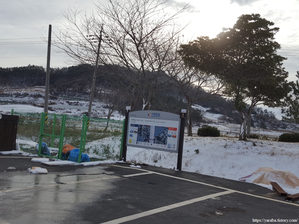 가치마을 버스정류장에서 시작하는 서해랑길 11코스는 북쪽으로 마을을 가로질러 간다.