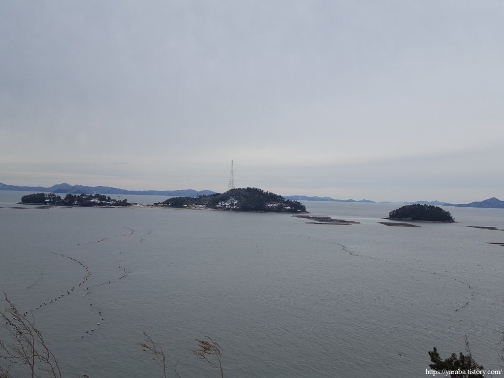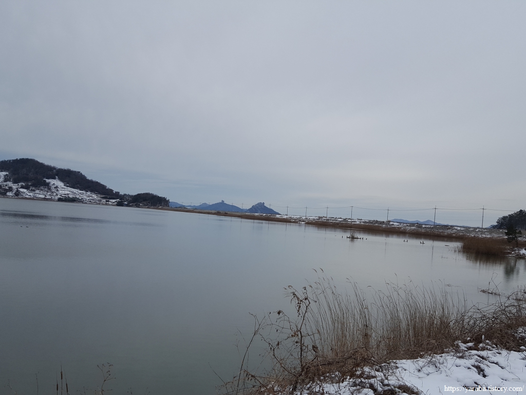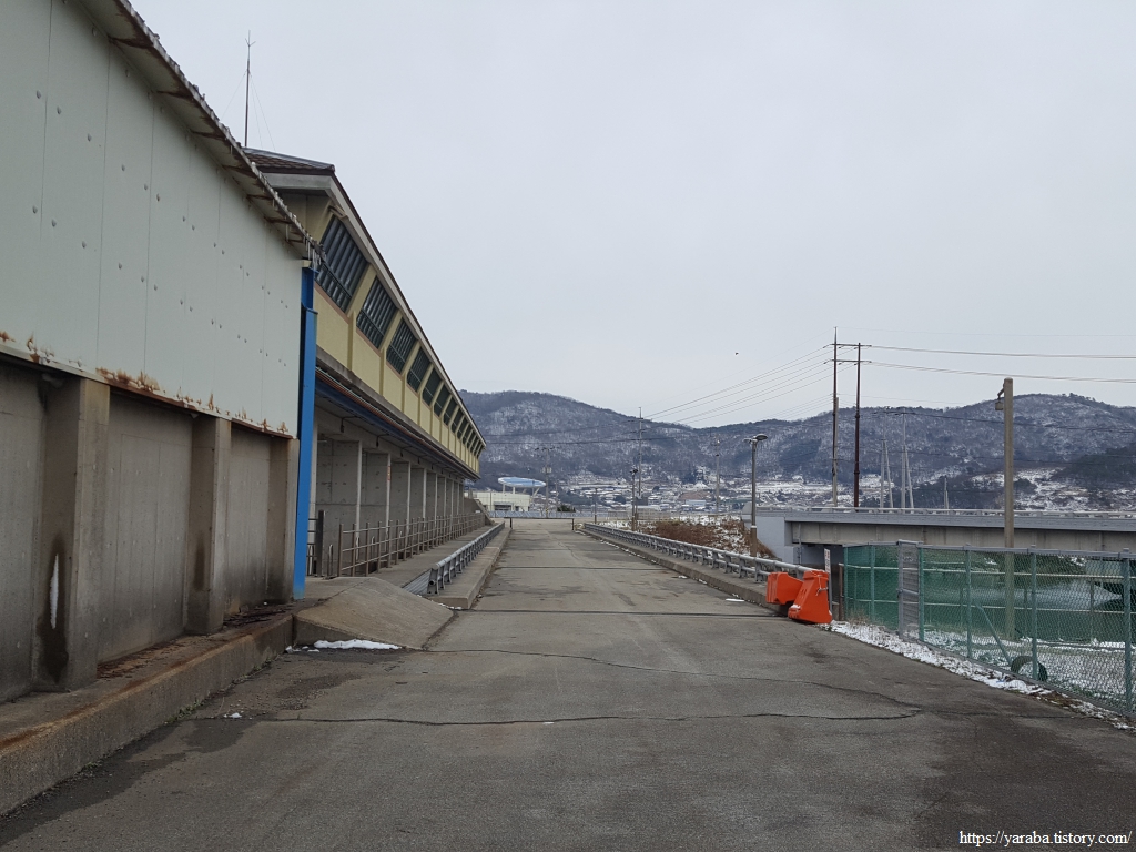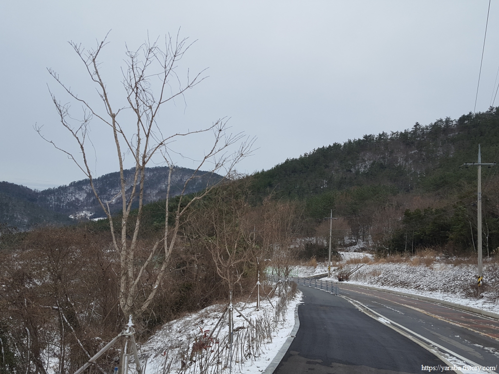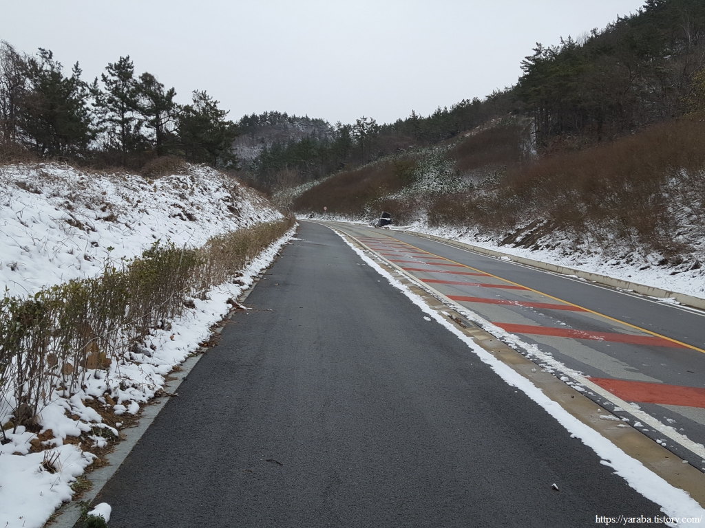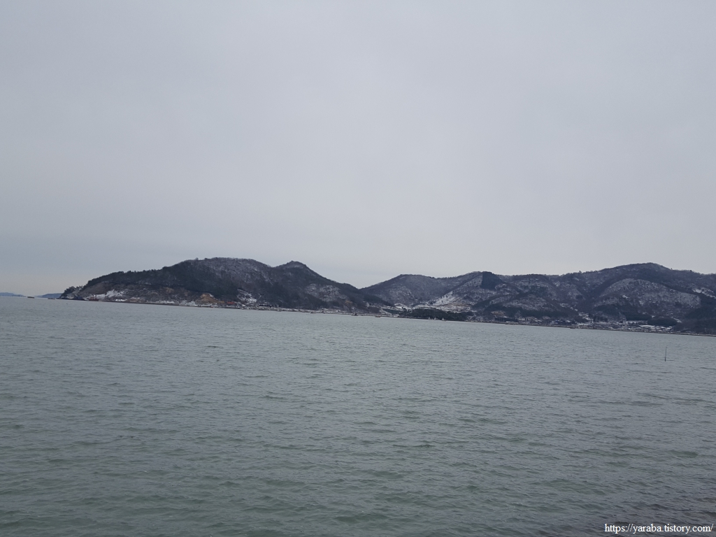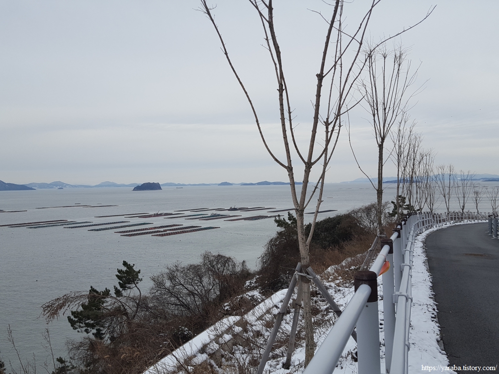 금노마을에서 잠시 휴식을 취했던 우리는 이후로는 휴식을 취할 수 있는 마땅한 곳을 찾지 못했다. 해안도로는 넓은 인도가 있어서 걷기에는 참 좋았지만 걷다가 쉴만한 공간이 없었다. 하보전마을에 오면 조금 쉴 수 있지 않을까 하는 기대를 했는데, 그 기대 또한 빗나갔다. 그늘진 응달은 눈이 녹지 않았고, 눈이 녹고 있는 곳은 물이 가득하고, 싸늘한 바람까지 불고 있으니, 부질없지만 평소에는 가지도 않는 비싼 커피를 파는 카페라도 있으면 좋겠다 하는 생각도 했다. 결국 배고픈 옆지기를 위한 휴식처를 찾지 못했으니, 이번에는 들길을 걸어가면서 김밥을 먹기로 했다. 쉴 곳이 없으니 걸어가면서 김밥 먹기라도 해야 옆지기의 허기를 달랠 수 있었다.
