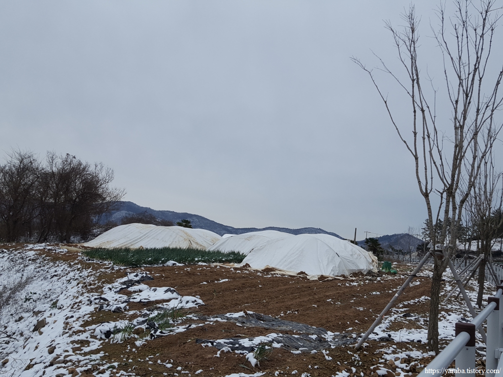 길을 걷는데 대파밭에서 독특한 풍경을 만난다. 날이 추우니 대파밭에 임시 천막을 쳐놓고 대파를 수확하고 있는 것이었다. 청년으로 보이는 외국인 근로자가 콧노래를 부르며 눈밭의 대파를 뽑아서 뿌리에 묻은 흙과 눈을 털고 있었다. 무슨 일이든 즐겁게 일하는 사람은 당할 수 없는 법, 청년이 한국에서 기반을 잘 닦아서 고국에서 성공할 수 있기를 바라본다.