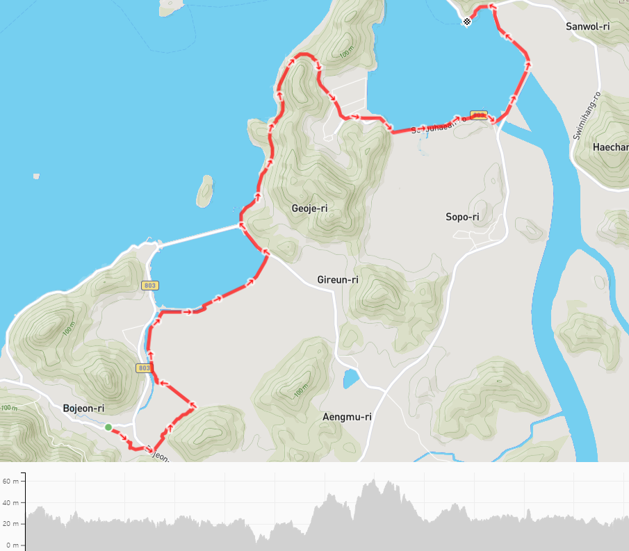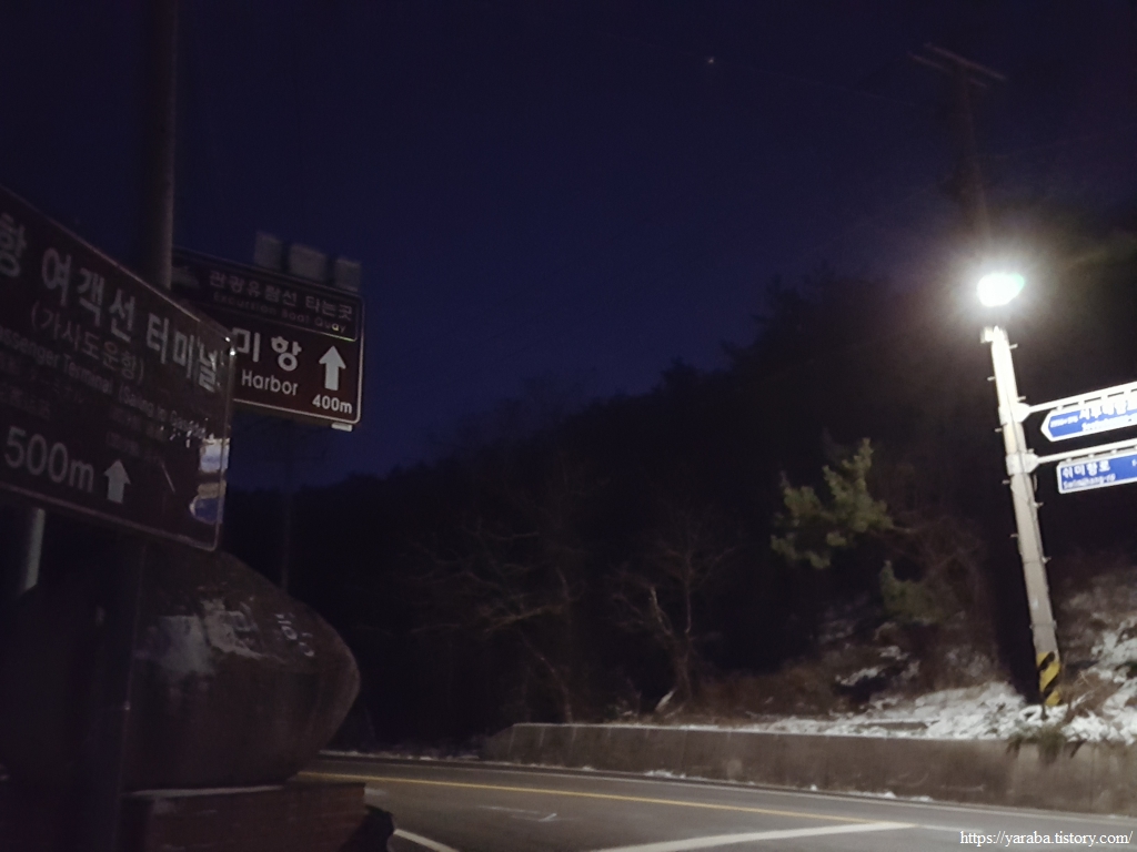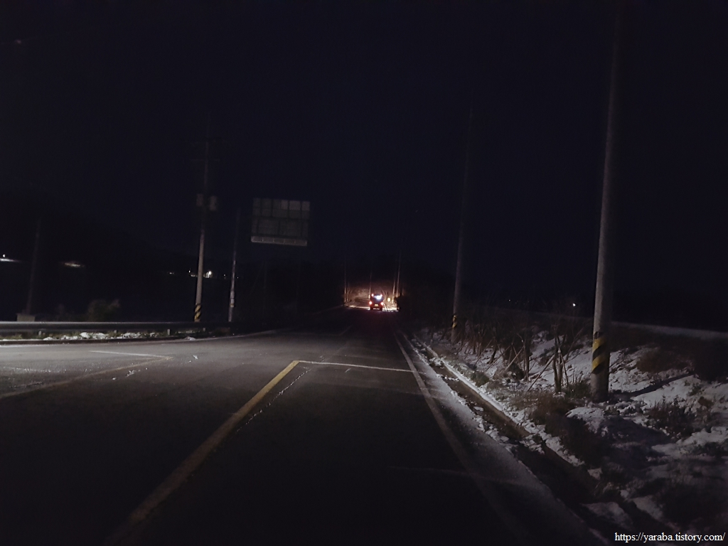 다음날 쉬미/소포행 첫차를 타고 교차로에 내려서 여정을 이어간다. 오늘은 쉬미항에서 11코스를 끝내면 바로 이어서 12코스와 13코스 일부를 걸을 예정이다. 우리를 내려준 군내버스는 어둠을 뚫고 소포방조제를 달려간다.