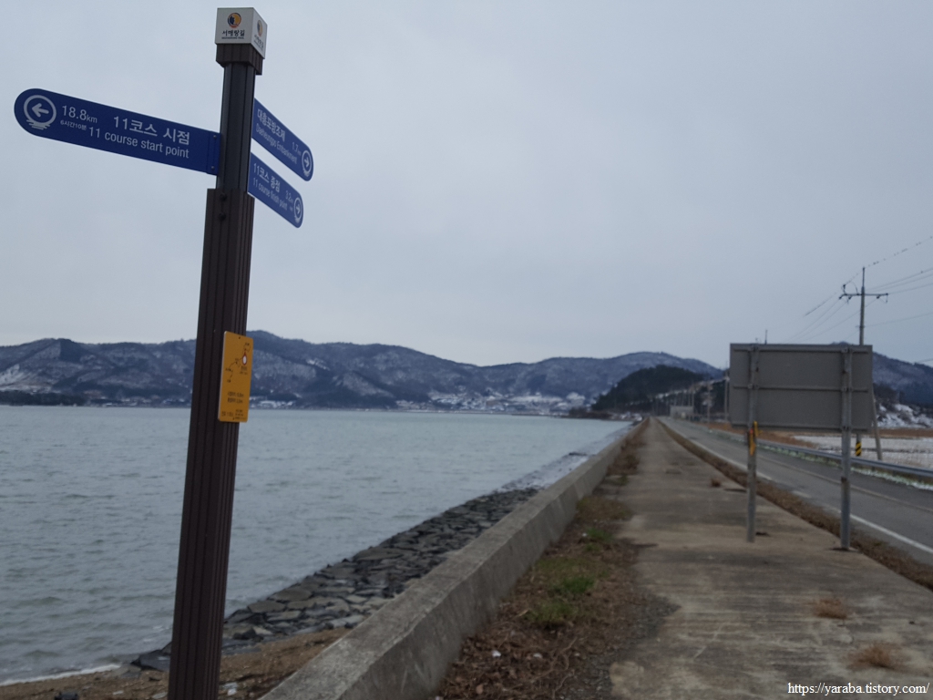 원래의 서해랑길은 방조제 끝에서 우회전하여 옛날에는 섬이었던 이곳을 남쪽으로 빙 돌아가지만 우리는 그냥 도로를 따라서 소포방조제로 향하기로 했다.