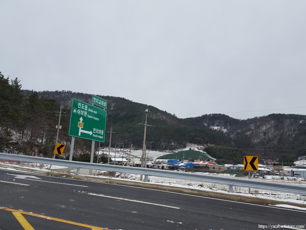 이곳에서 진도읍내로 빨리 가고 싶다면 소포방조제를 지나 산월리로 가는 십일시와 갈두를 거쳐오는 반대 방향의 버스를 타면 되고 터미널 출발 시간은 위와 같다.