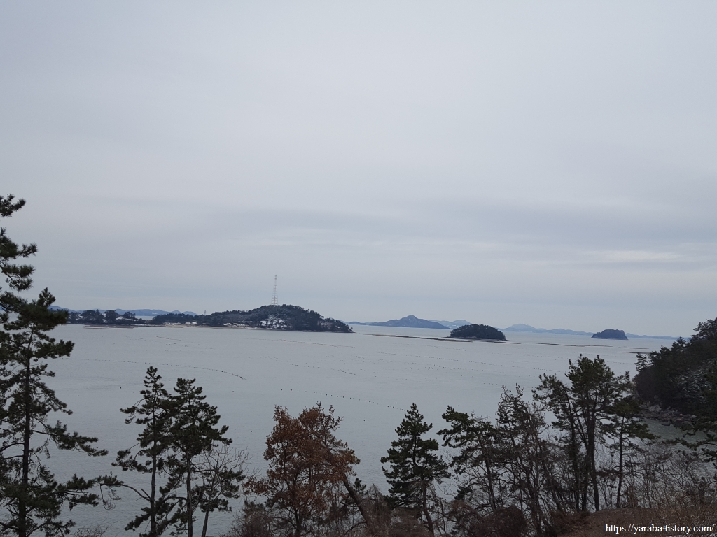 길을 따라 언덕에 올라서니 항아리처럼 오목하게 들어온 바다 건너편으로 쉬미항도 보이고 우측으로는 우리가 걸어가야 할 대흥포방조제도 보인다.