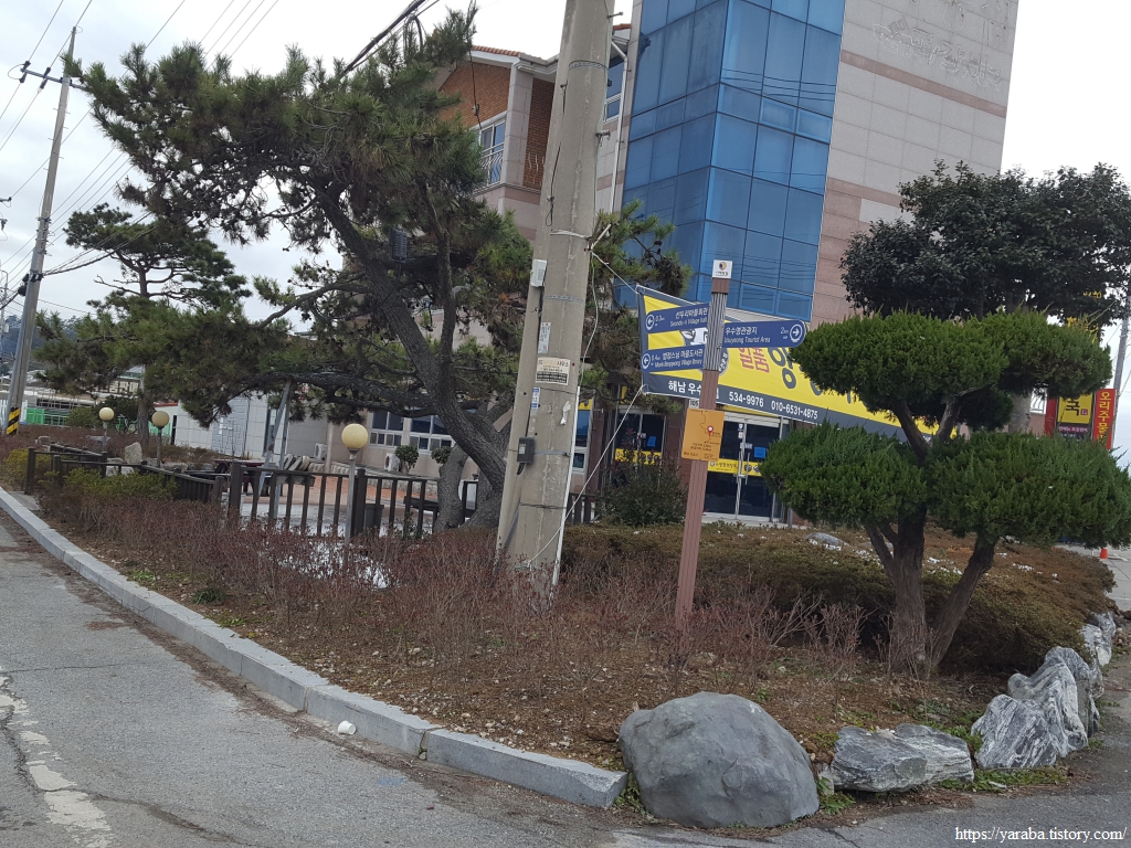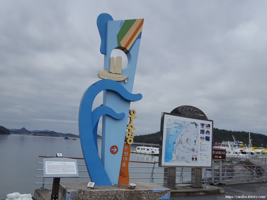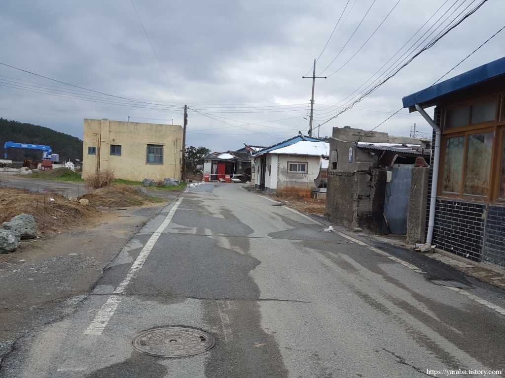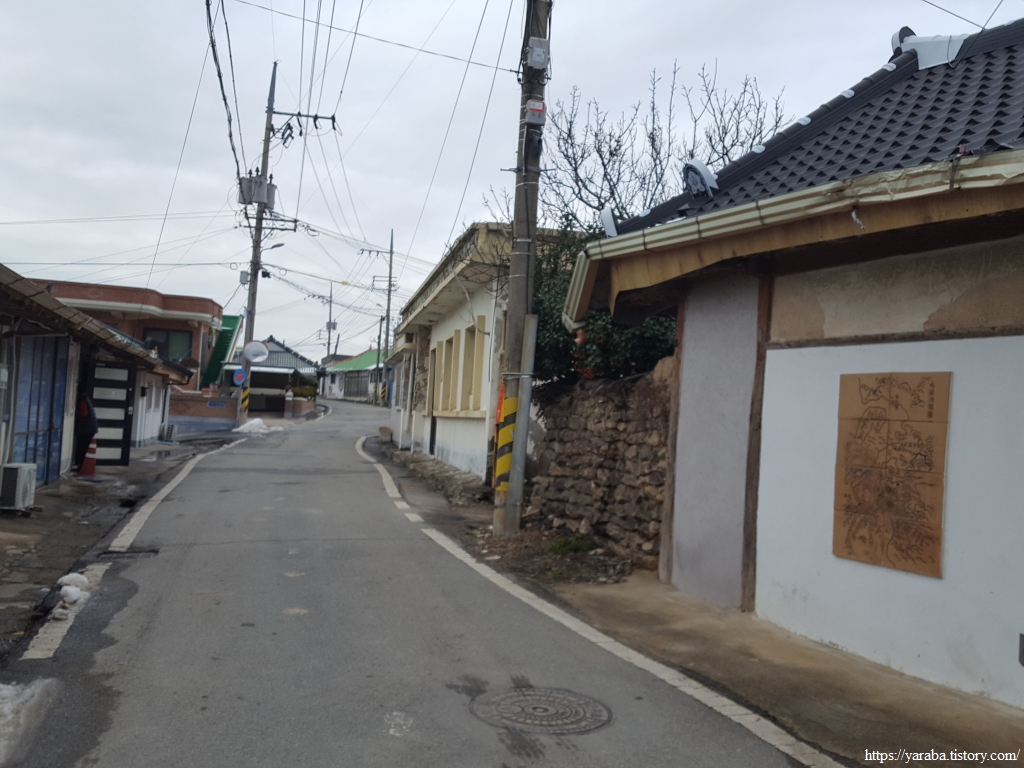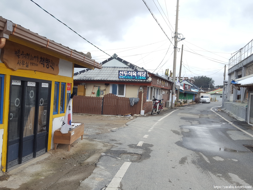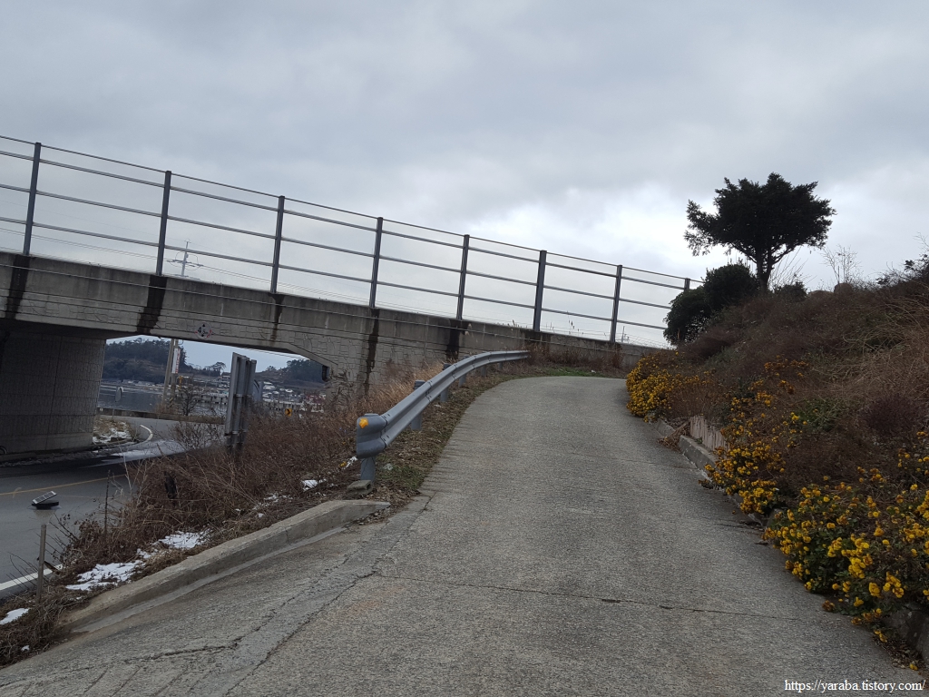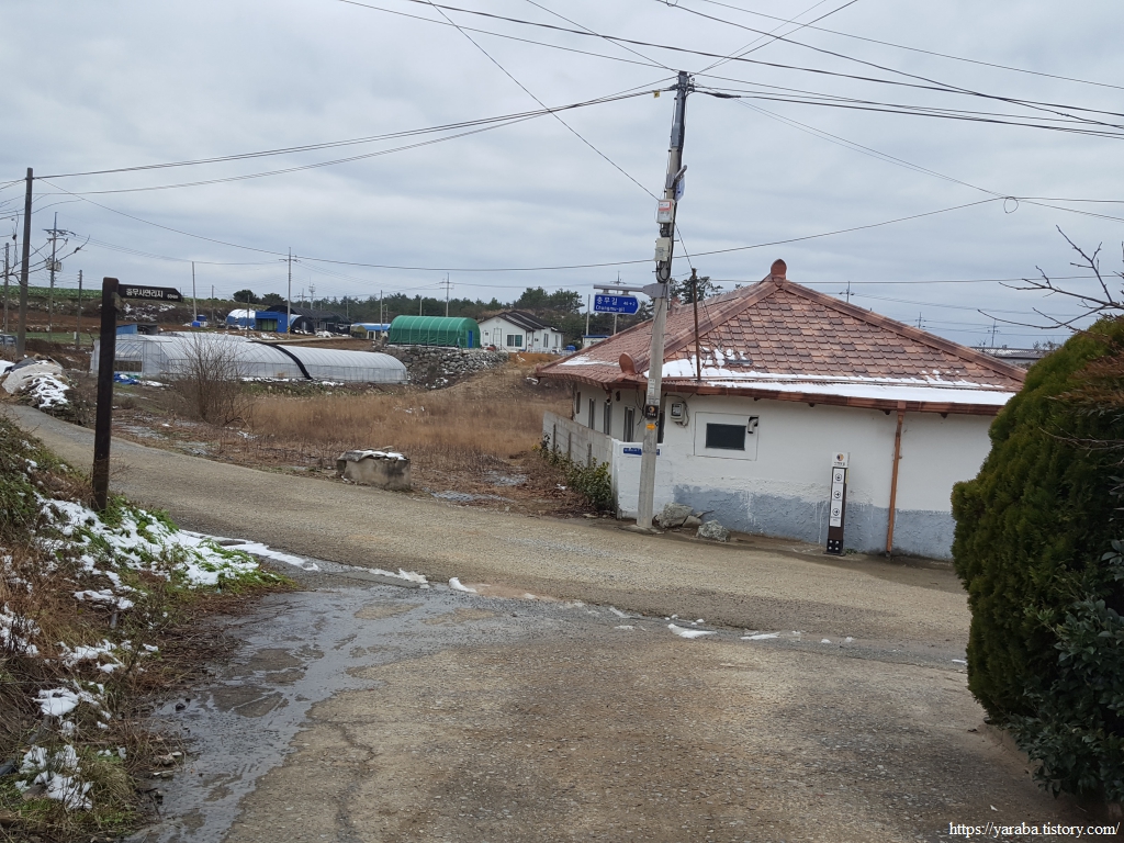 해변으로 데크길이 설치되어 있었지만, 눈이 쌓여 있어서 눈이 녹은 도로를 따라서 우수영 문화마을로 길을 잡는다.