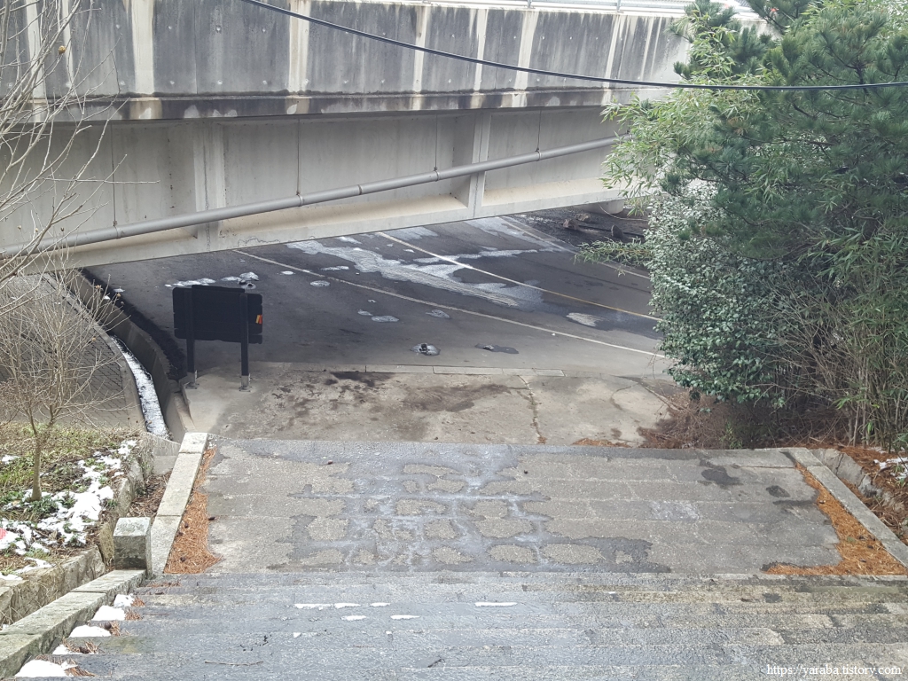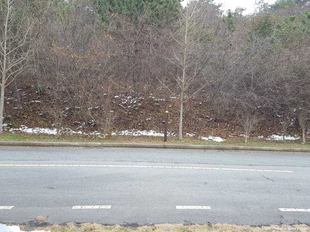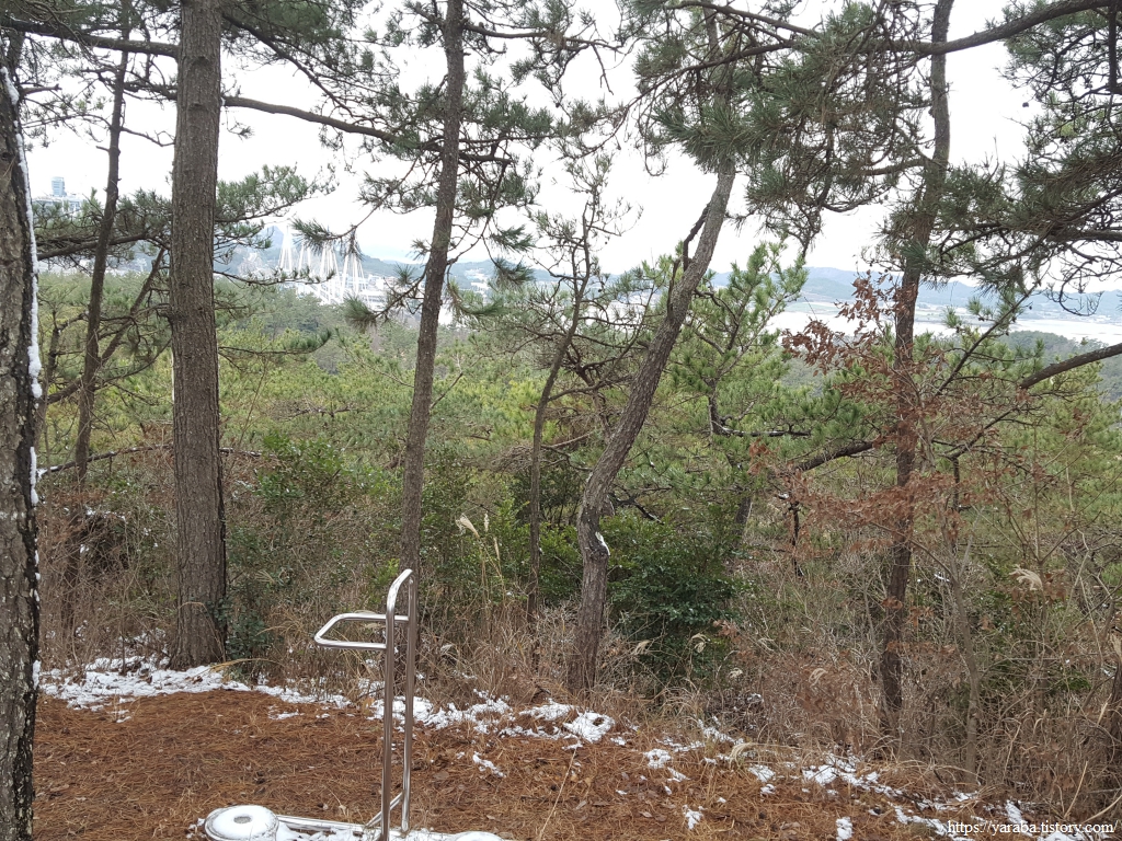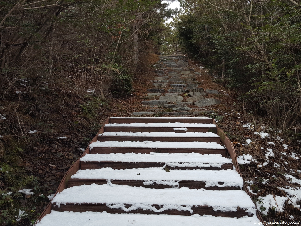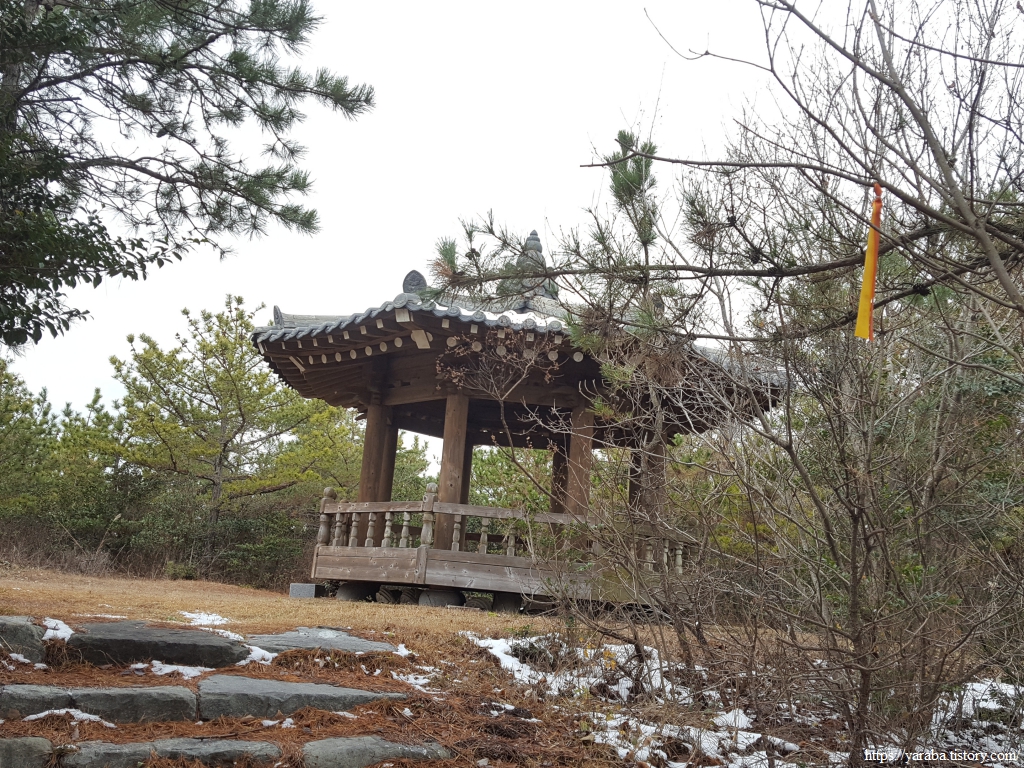 눈이 남아 있는 계단을 조금 오르다 보면 금방 쉼터 정자에 닿는다.