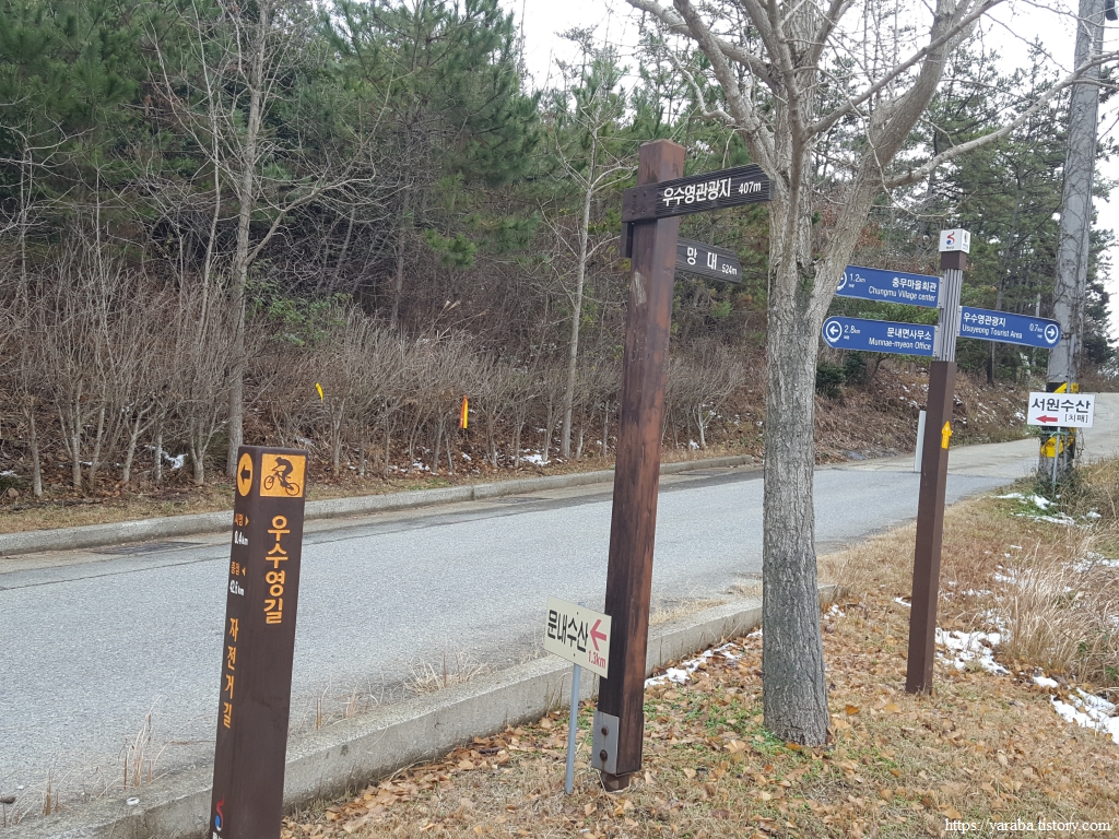 중간에 우회전하는 전망대 표식이 있지만 길은 전망대로 가지 않고 좌회전하여 청룡산을 오르기 시작한다.