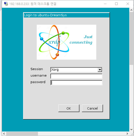 원격데스크톱(윈도우키+r, mstsc)을 실행시키고 우분투의 주소를 입력하면 경고창이 나오는데 통과시킨다.