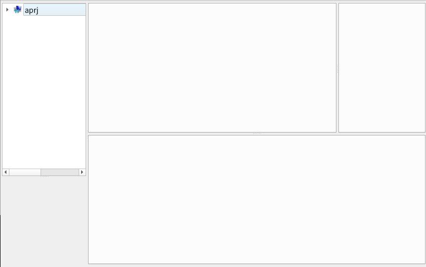 완성된 창 나누기 그림이다. 모든 영역은 경계선에 마우스를 올려두면 사용자가 크기를 조정할 수 있다. 먼저 전체 영역을 좌우로 나누고 각 영역을 상하로 나눈다. 그리고 우측 위쪽 영역을 다시 좌우로 나눈 결과이다. 간단히 "전체 - 좌(-상, 하), 우(-상[-좌, 우], 하)"로 정리할 수 있는데 구조적인 구성임을 알 수 있다. 구조적이라는 의미는 하부 요소는 상위 요소의 자식(Child) 요소로 지정되어야 한다는 의미다.