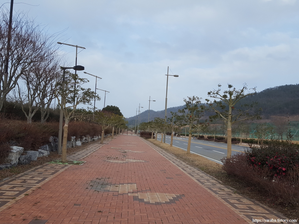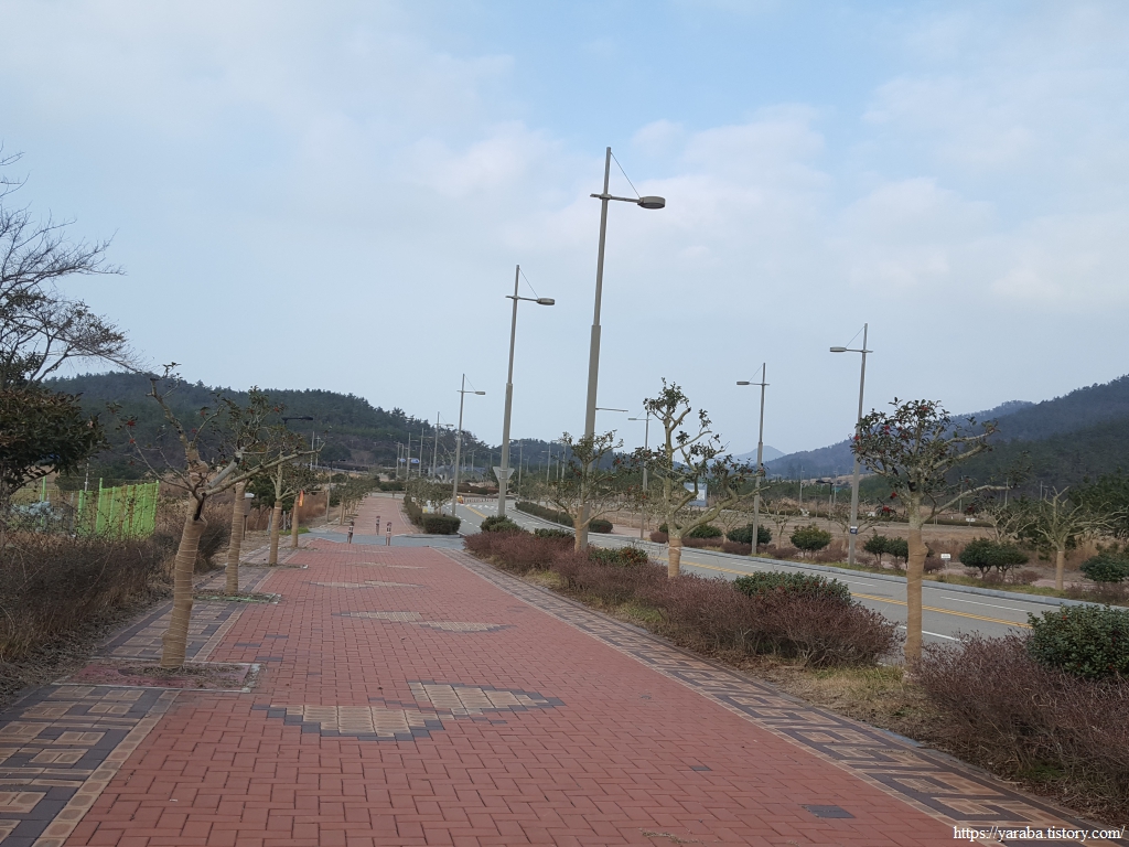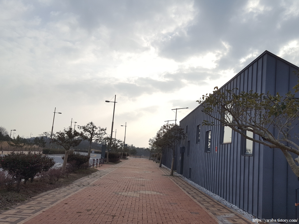 뉘엿뉘엿 지고 있는 서산의 태양을 뒤로하고 관광단지 길을 계속 걸어간다. 이곳이 활성화되어 묵어갈 수 있는 숙소도 있고 편의점이나 식당도 있었으면 얼마나 좋았을까 하는 아쉬움이 남는다.