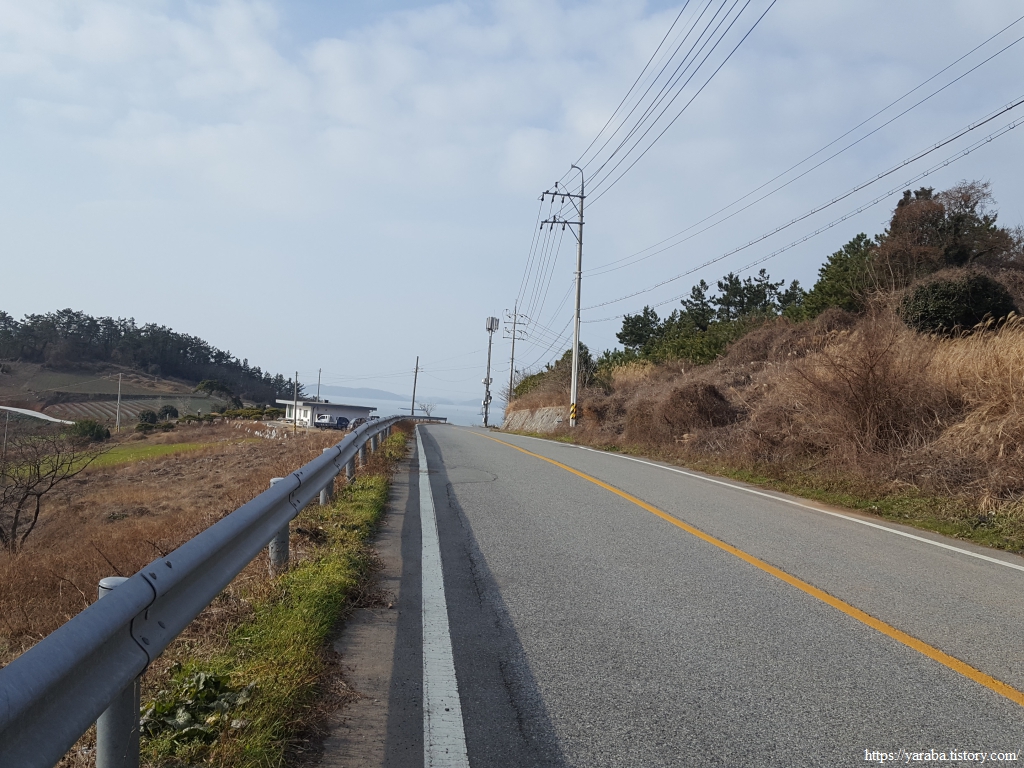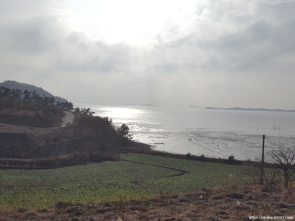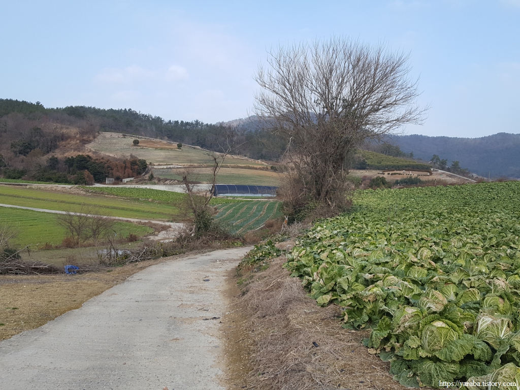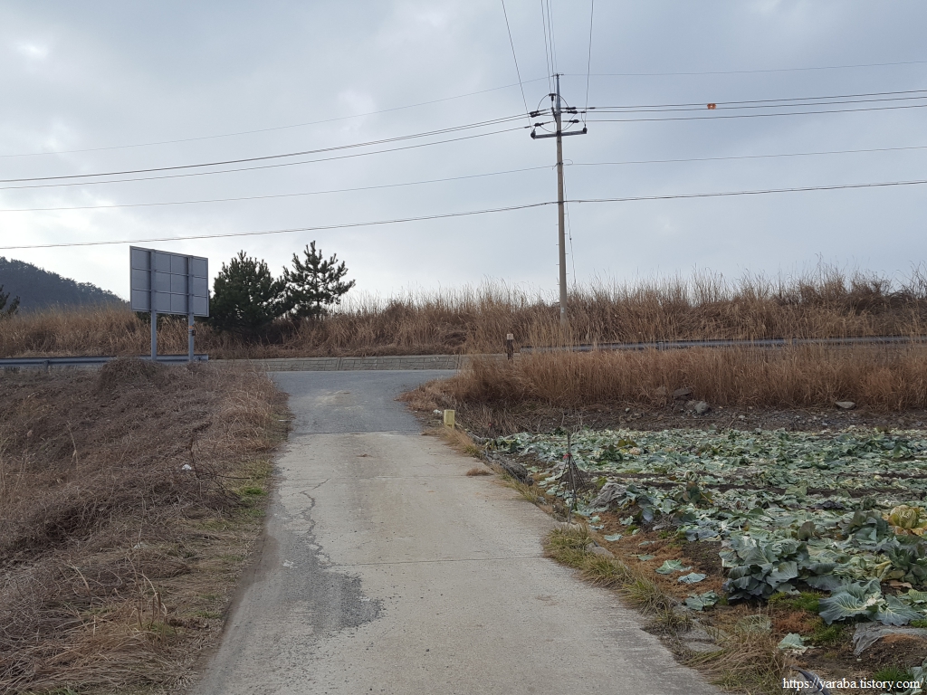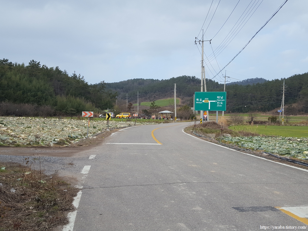 오전에는 쾌청하고 맑은 하늘이었는데 구름이 몰려올 때는 바람도 강해지고 추운 날씨가 더 서늘해진다. 우수영로 도로와 만나는 지점에서는 수확이 끝난 양배추 밭이 있었다. 제주도의 양배추 생산량이 압도적이고 강원도 평창과 충남 서산과 함께 인근에 있는 진도가 양배추의 주산지라서 그런지 이곳에서도 양배추 수확이 한창이었다. 그런데 배추도 그렇지만, 양배추도 수확 후에 밭에 남는 잔여물이 너무 많아 보인다. 소비자의 기호도 중요하지만 수확 현장부터 쓰레기가 많으니 안타깝다.