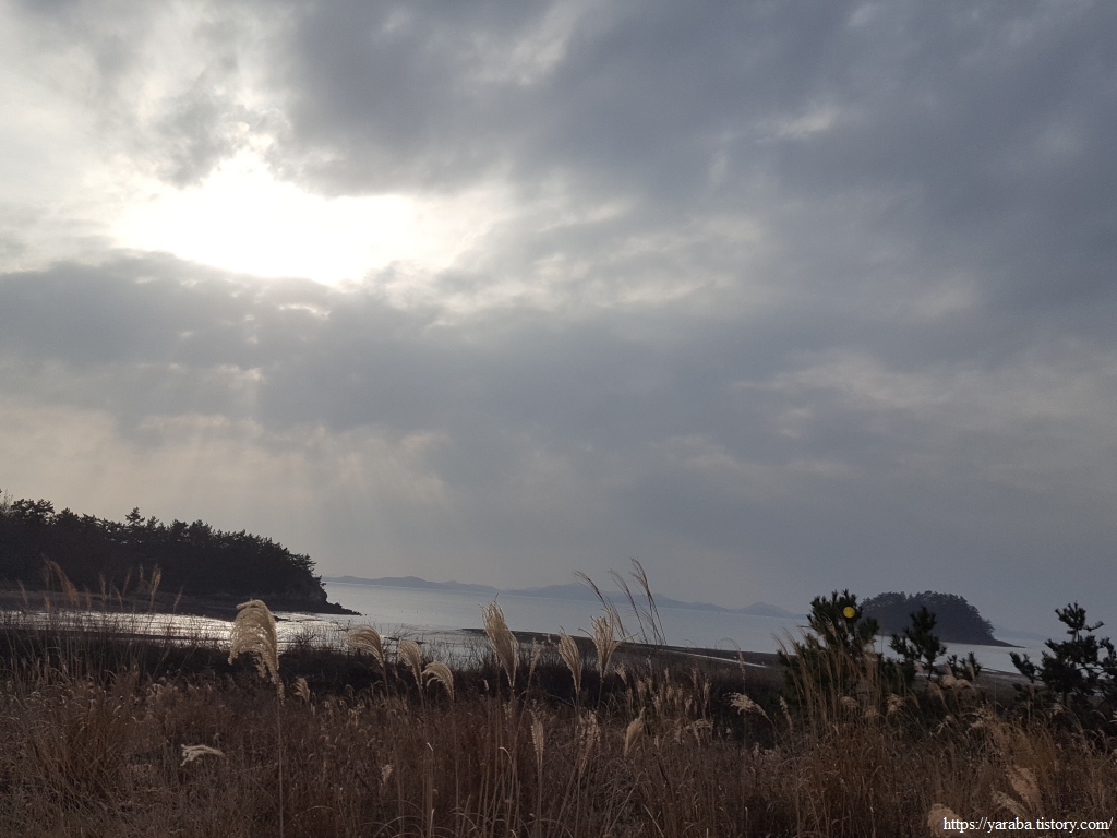저녁으로 달려가고 있는 시간, 서쪽 하늘의 태양은 아직은 강렬함을 잃지 않고 있다. 한 여름 해안길을 걸을 때면 그늘이 없어 난감했지만, 한 겨울인 지금은 따스한 빛이 그저 고마울 뿐이다. 굽이 굽이 길을 걷다가 그늘을 만나는 것이 꺼려진다.