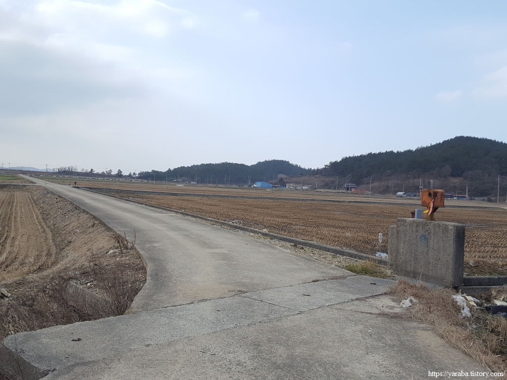 학상 마을을 빠져나온 길은 석호마을로 가는 길을 가로질러 서쪽 제방으로 향한다.