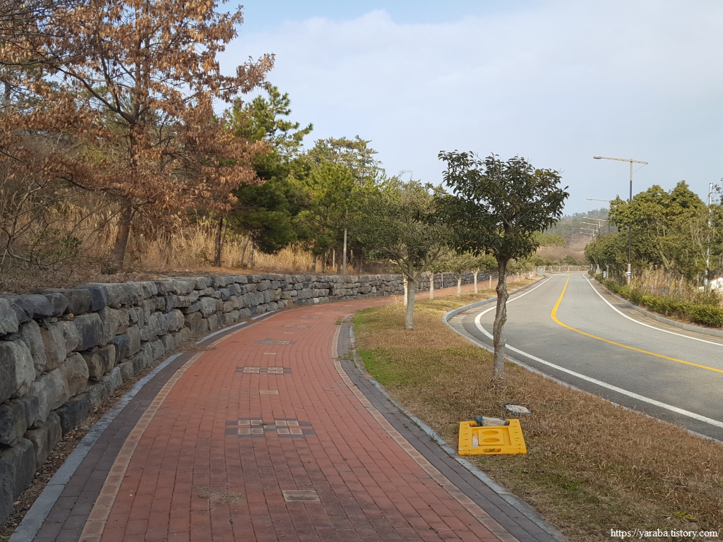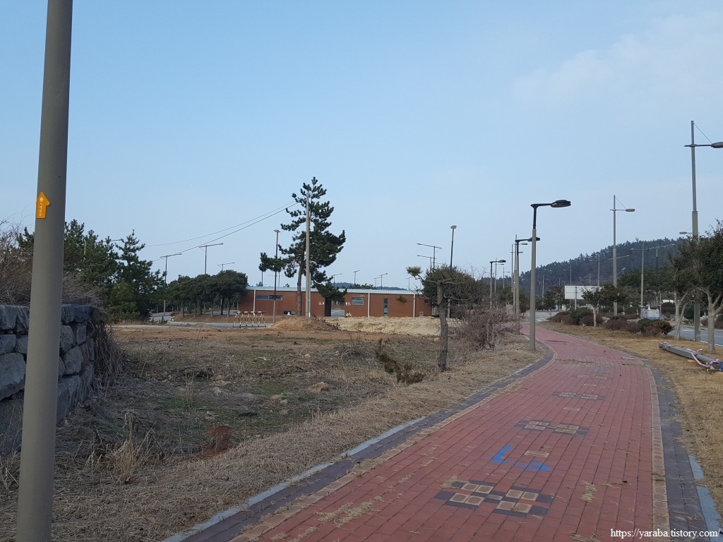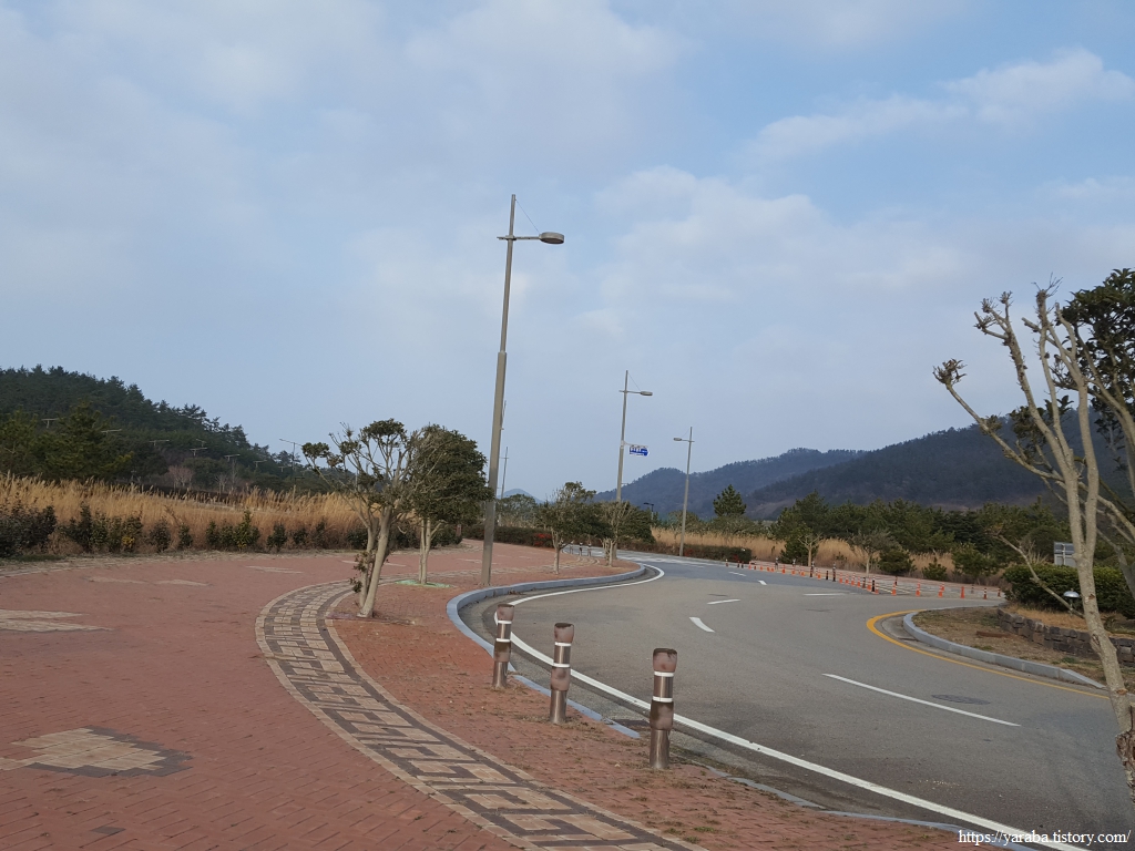 길을 걷다 보니 화원반도길이라는 이름의 자전거길 표식도 만난다. 사람도 자동차도 많지 않으니 자전거 타기에는 딱이겠다는 생각도 든다. 오시아노 관광단지 구간을 지나는 동안 넓은 주차장도 눈에 들어왔지만, 무엇보다 훌륭했던 것은 깨끗한 화장실이 곳곳에 설치되어 있었다는 점이다. 해남은 땅끝 마을도 그렇고 터미널도 그렇고 어디를 가나 공공 화장실이 깨끗하다는 점이 마음에 든다.
