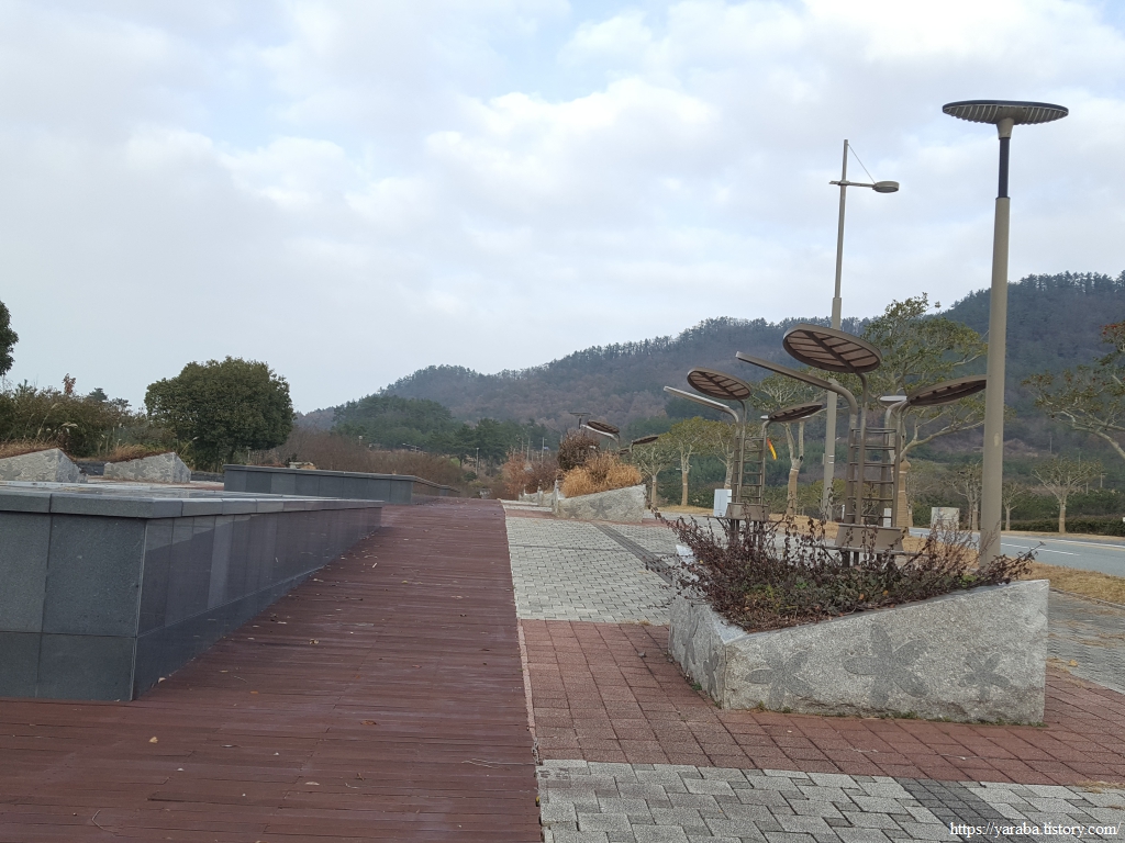 이곳의 가로수는 제주 올레길에서 만났던 먼나무이다. 이 나무들이 키가 훌쩍 클 때까지는 이곳이 제주처럼 사람들이 많이 찾는 곳이 되었으면 좋겠다. 벽으로 쌓은 돌도 가로수도 제주 분위기 맞다.