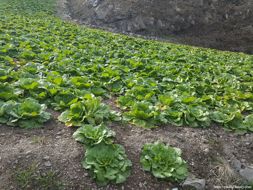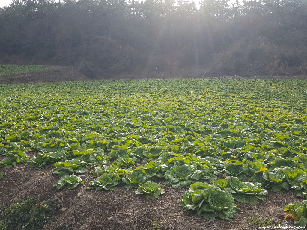 이곳도 구릉지대는 대부분 대파 아니면 배추밭이고 평야 지대는 논으로 드문드문 보리를 심었다.