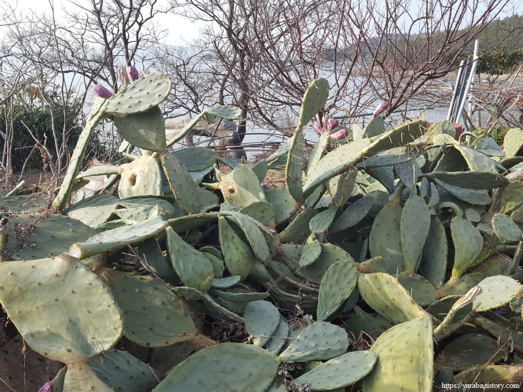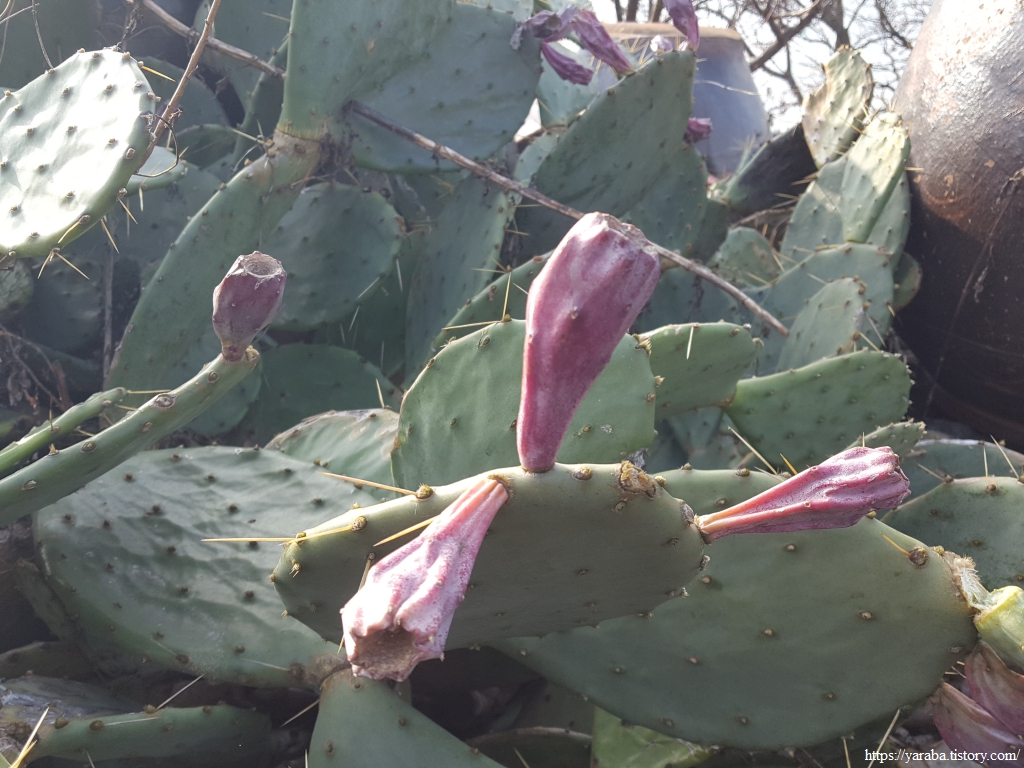도로옆 민가에 싱싱하게 자라고 있는 백년초. 제주에서나 잘 크고 월동도 가능한 줄 알았는데 중부 지방에서도 노지 월동이 가능하다고 한다. 손바닥 선인장과 열매 모두 식용이 가능하다고 하니 키워보고 싶은 식물이다.