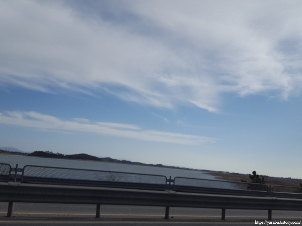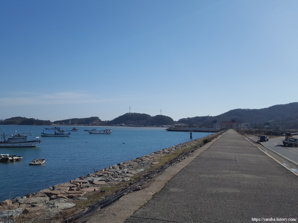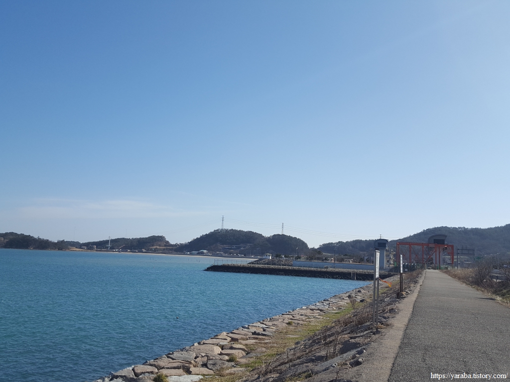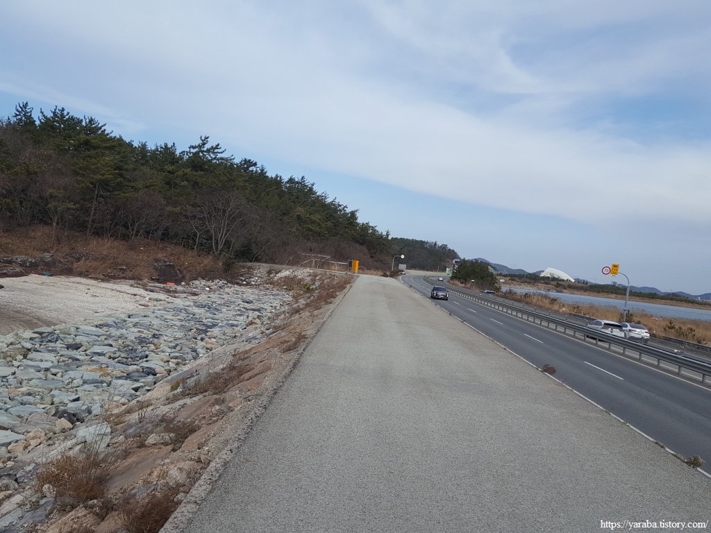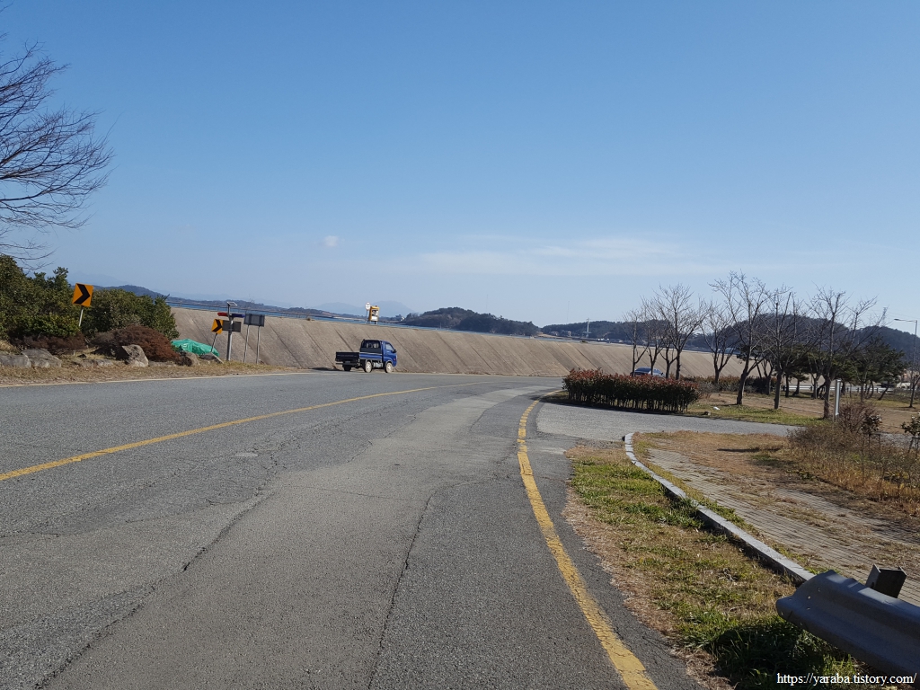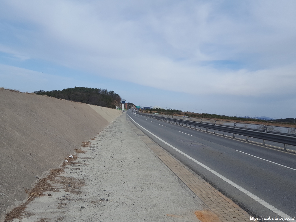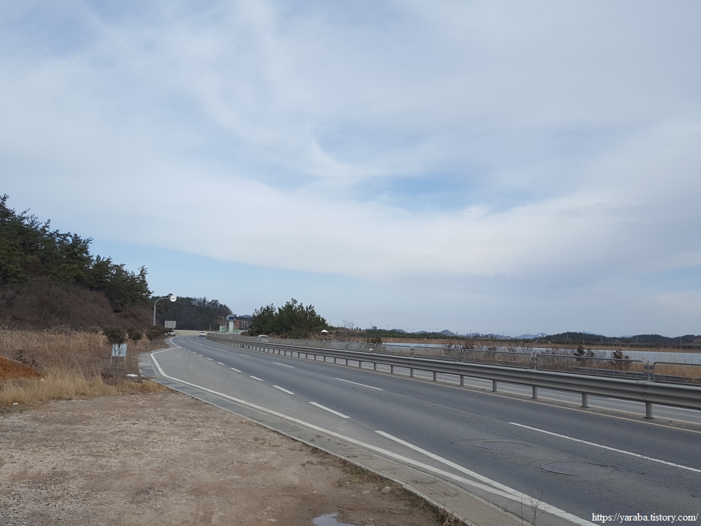 길은 금호방조제까지 쭉 직진하여 방조제 위로 올라가서 길을 이어간다.