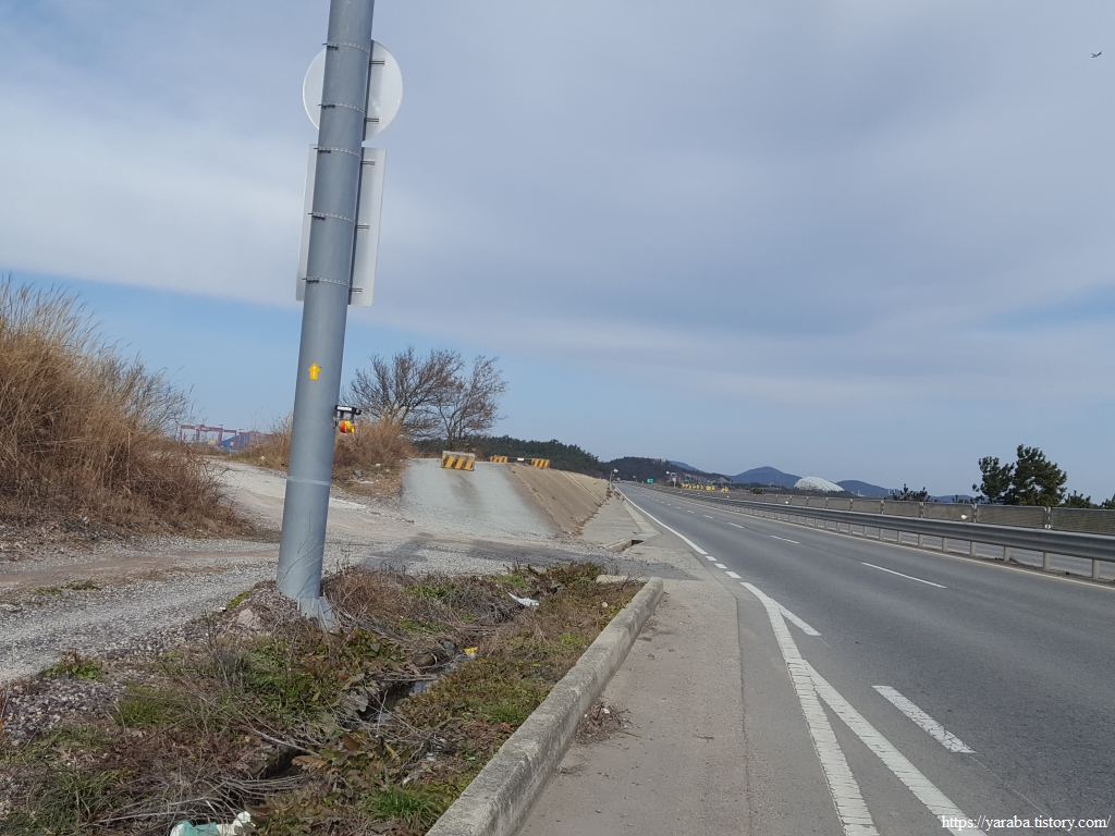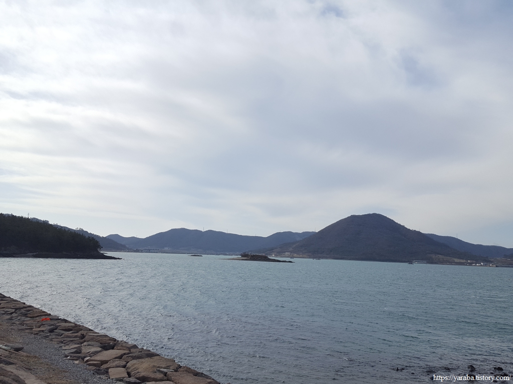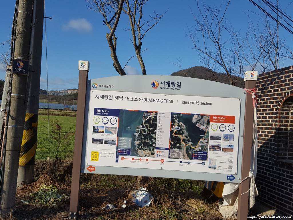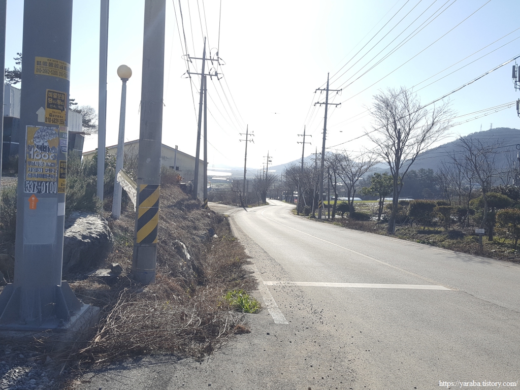 당포마을 이후로 쉬지 않고 걸어온 길, 저상마을 버스정류장에서 잠시 목을 축이고 길을 이어간다. 햇빛이 있어서 다행이기는 하지만 추워서 배낭을 벗는 것조차 망설여진다. 게다가 바람까지 불어오니 정류장에 있어도 바람을 피할 수는 없다. 그냥 계속 걷는 것이 오히려 낫다.