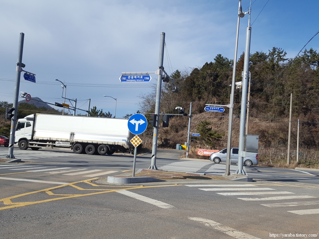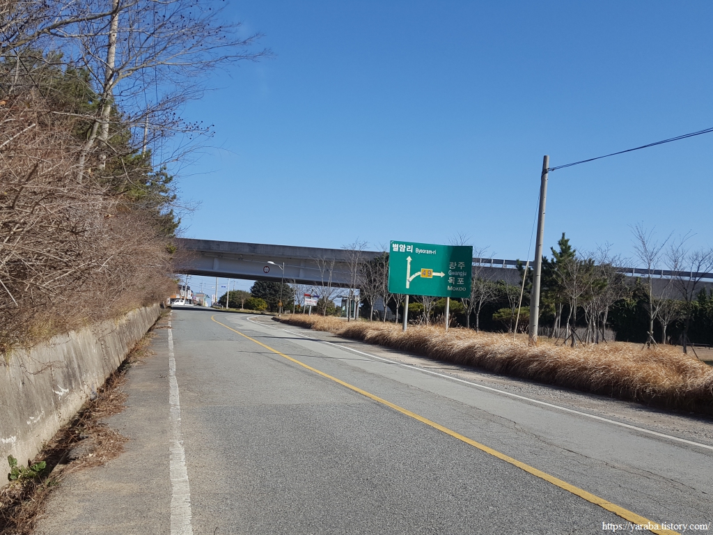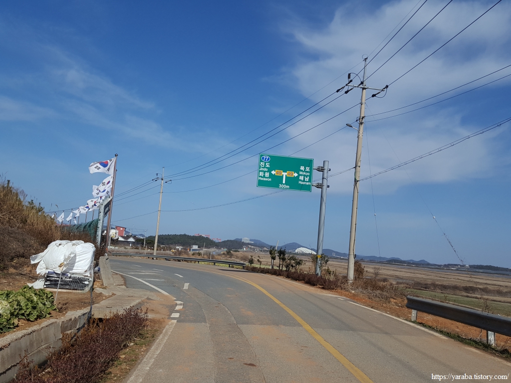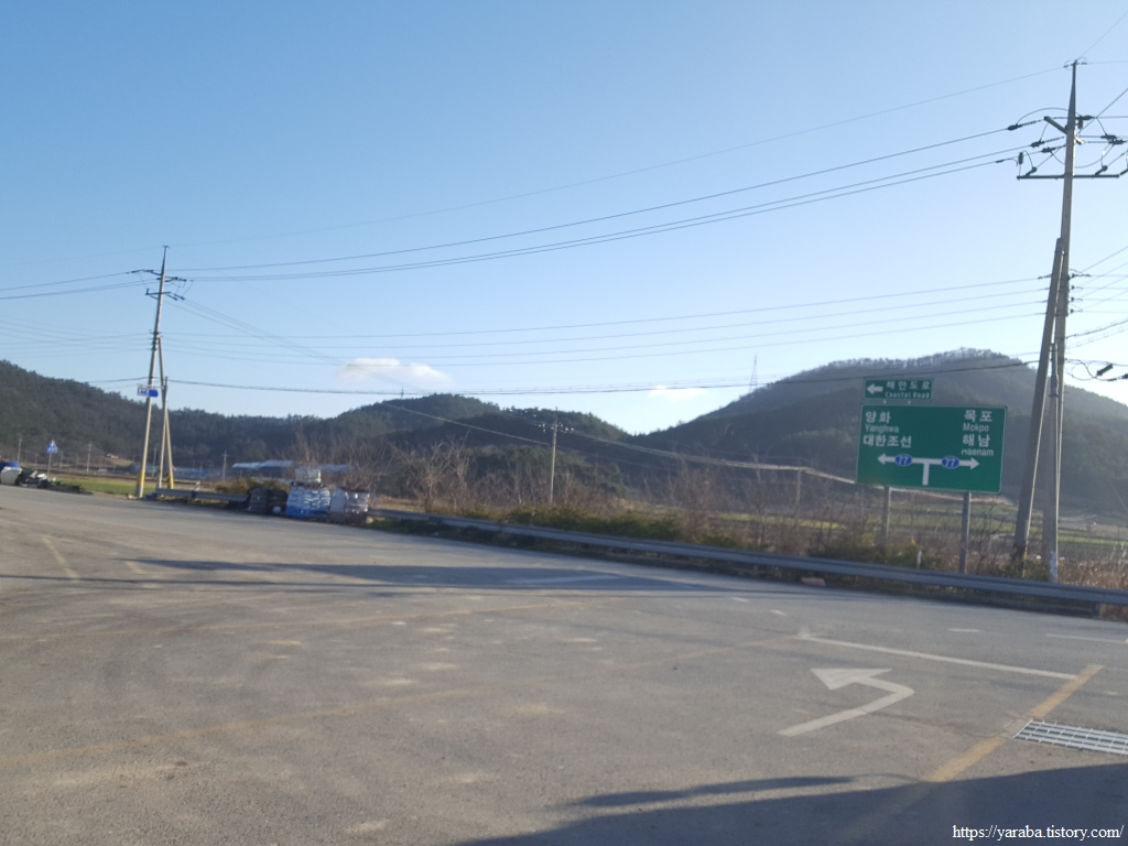 금호마을에서 나온 길은 해남 화원면과 목포로 갈라지는 국도와 만나서 길을 이어간다.
