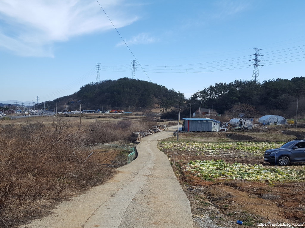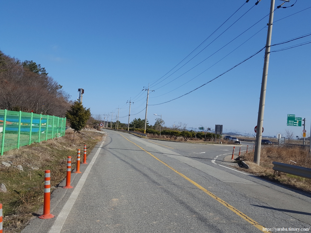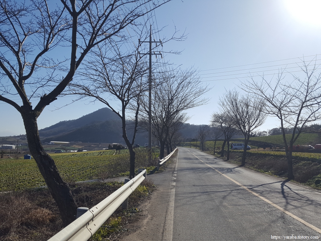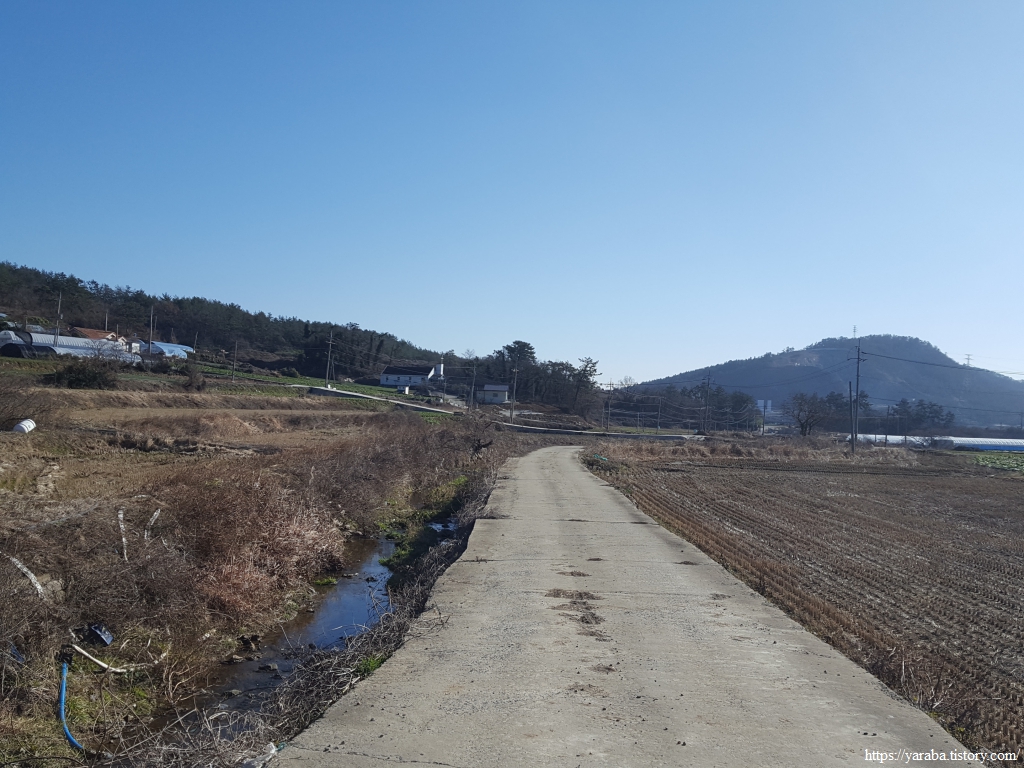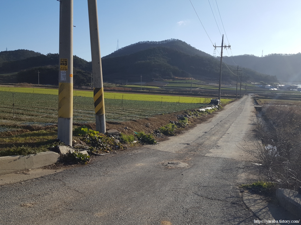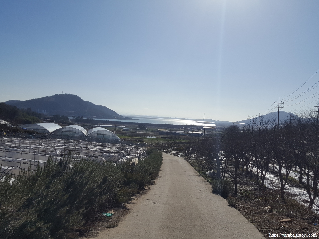 이 근방에서 원래의 서해랑길은 좌측으로 도로를 벗어나 마천마을로 가야 하지만 우리는 그만 길을 지나치고 말았다. 아마도 배추 수확 현장을 보느라 서해랑길 표식을 놓친 모양이다. 그렇지만, 어차피 마천마을을 돌아오는 서해랑길과 나중에 도로에서 합류하니 그냥 도로를 걷기로 했다. 하지만 도로도 넓지 않고 자동차가 많은 편이라 할 수만 있다면 원래의 경로로 걷는 것이 좋다.