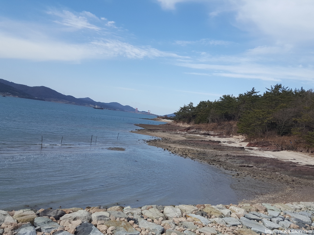 예전에는 섬이었을 공간은 이제는 방조제로 연결되어 우리에게 절경을 선사한다. 동글담도라는 섬이었다고 한다.