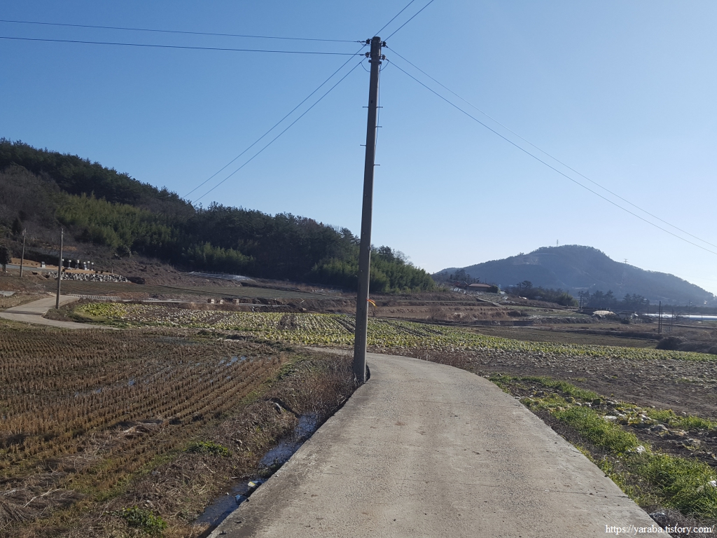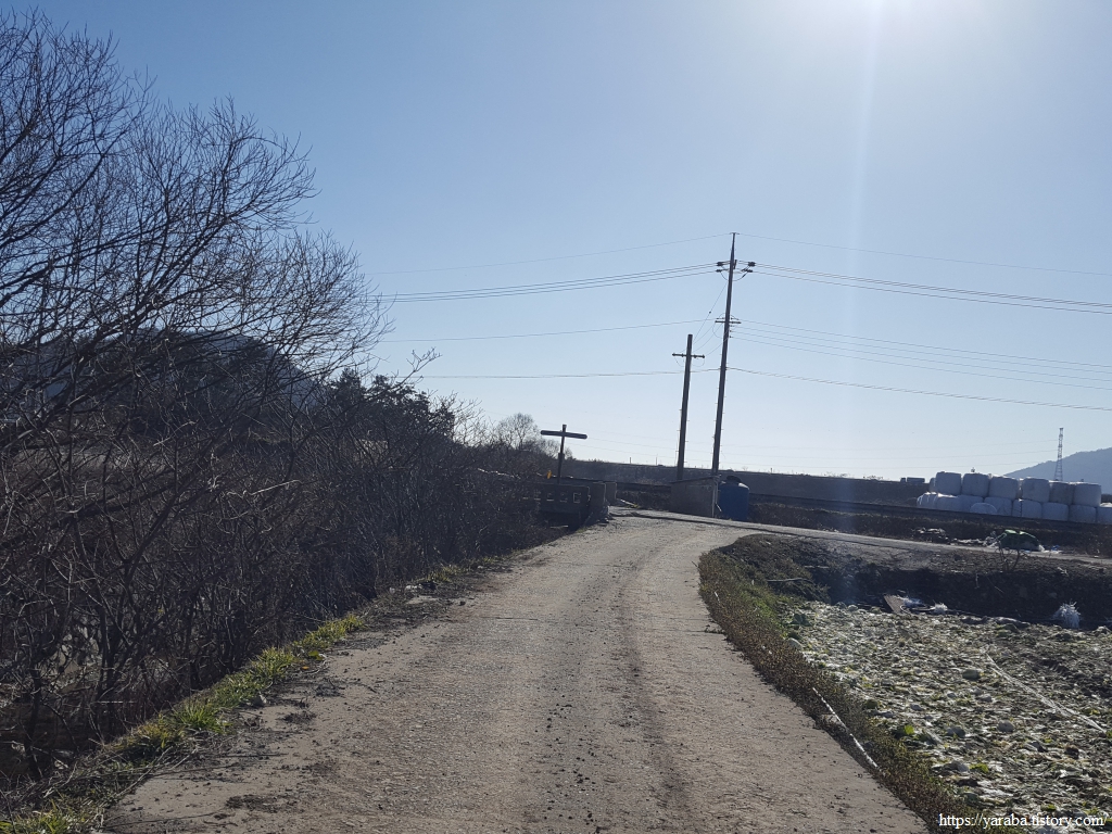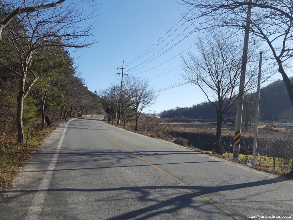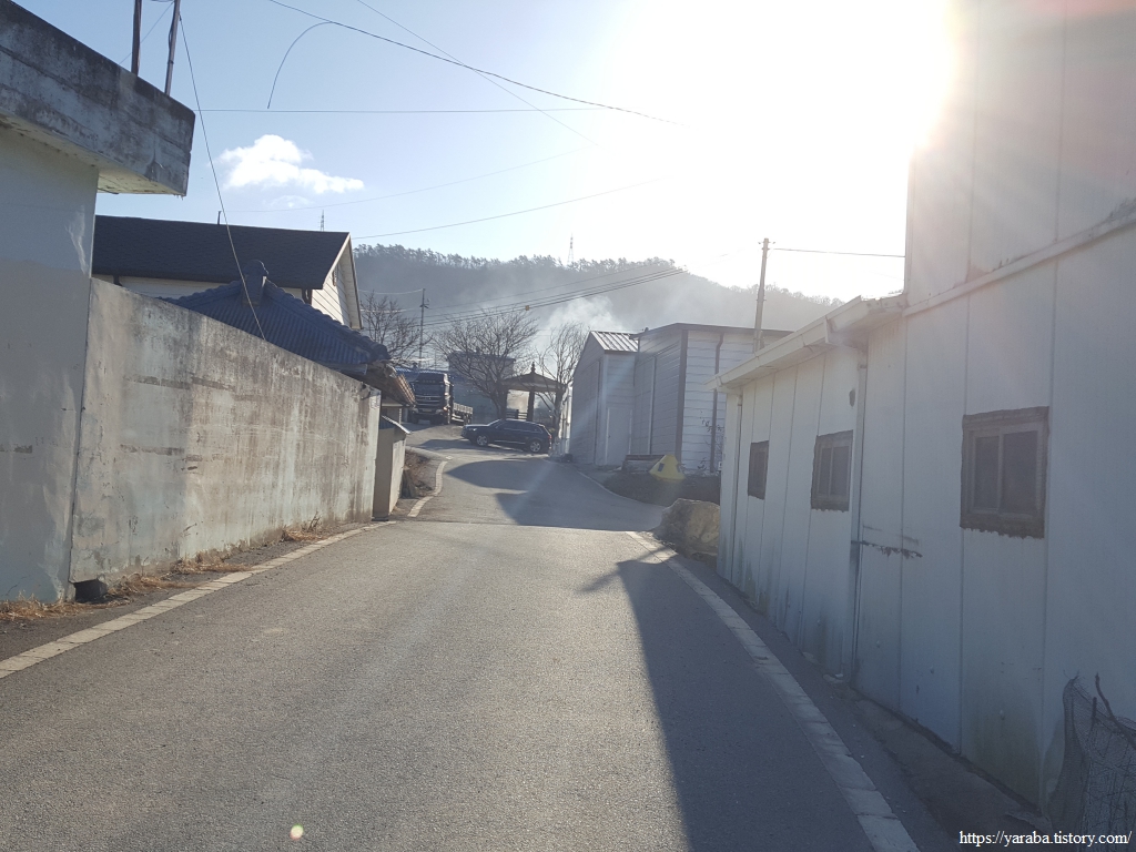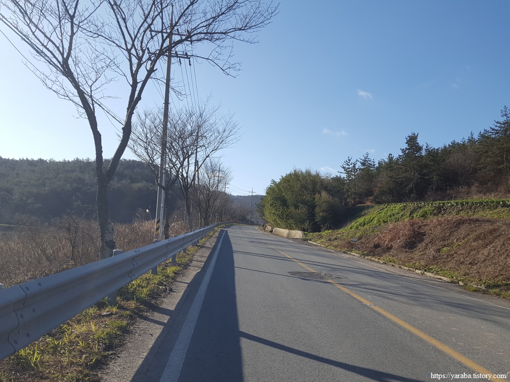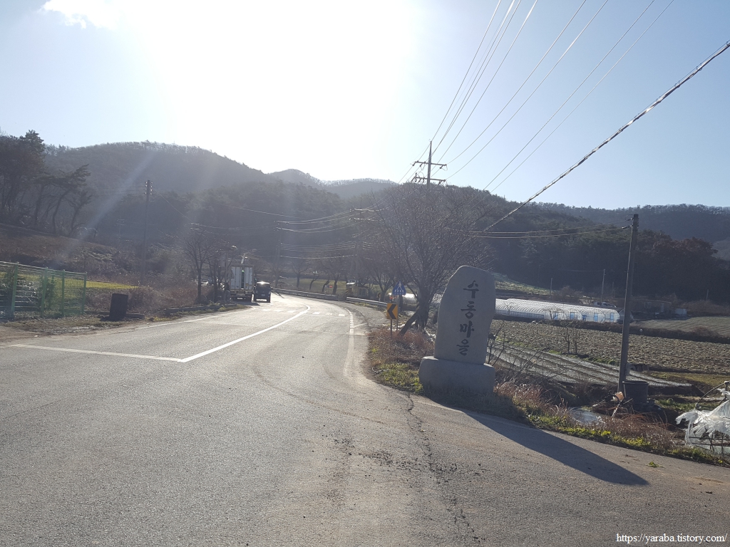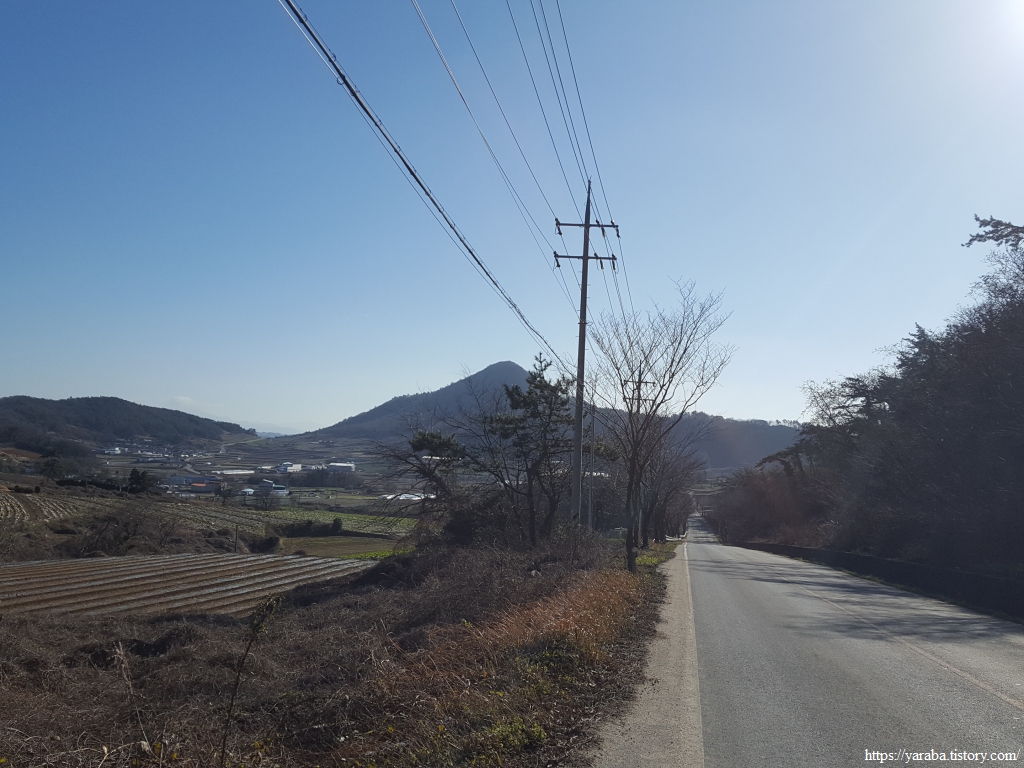 이른 아침부터 배추 수확이 한창인 수동마을을 지나니 멀리 완만한 오르막길 끝에 고갯 마루가 보이기 시작한다. 날씨가 추워서 일하러 나온 외국인 근로자들은 두건에 장갑까지 나름 방한 준비를 하고 나왔지만 그래도 추운 모양이다. 그렇지만, 돌이켜 보면 이들에게 한겨울 1월에 배추 수확이라는 일거리가 있는 것도 좋은 일이겠구나 하는 생각도 든다.