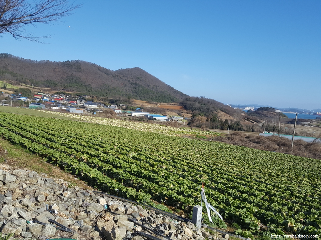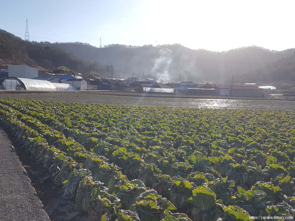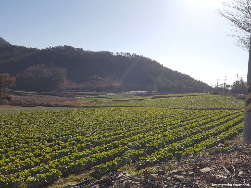 산으로 둘러싸인 곳이라 이곳은 논보다는 구릉지대가 많아 넓은 배추밭이 가득하다.