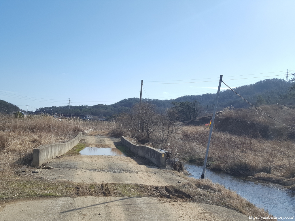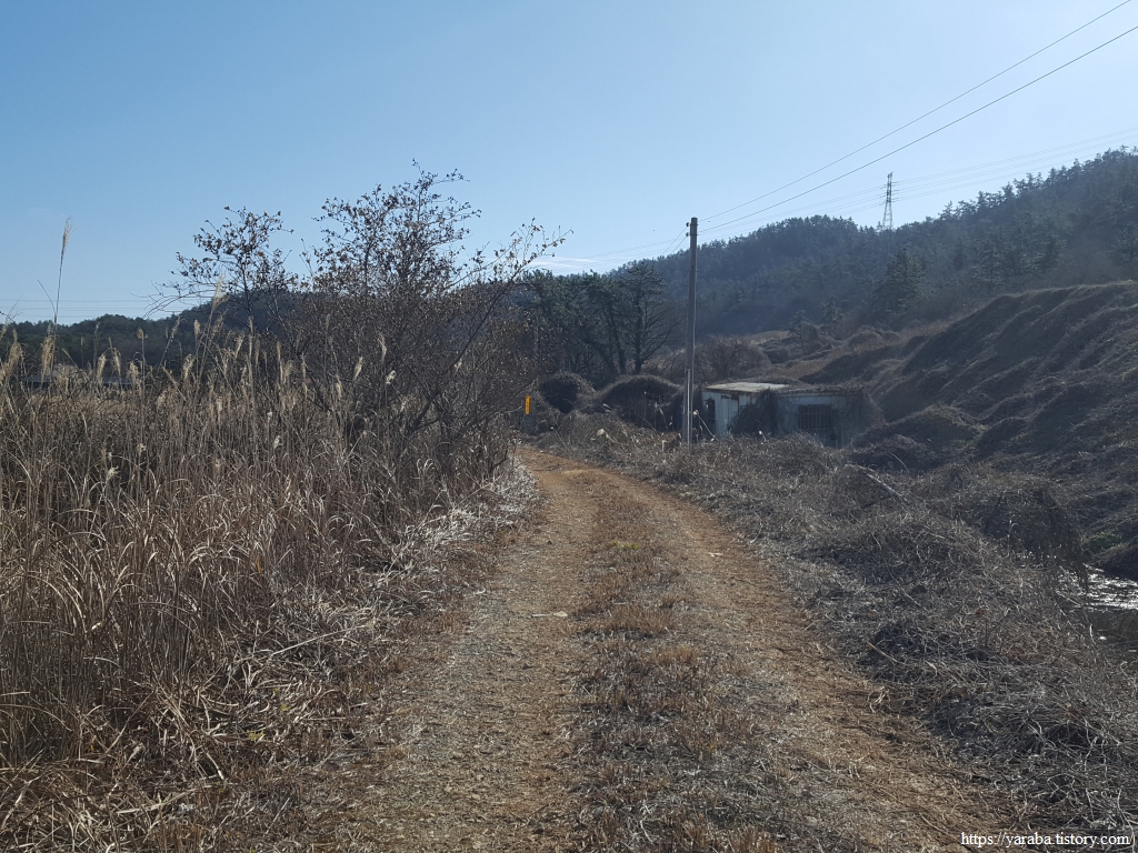 길은 저상마을 안으로는 들어가지 않고 마을 앞을 흐르는 작은 수로를 따라서 금호호 방면으로 내려간다.