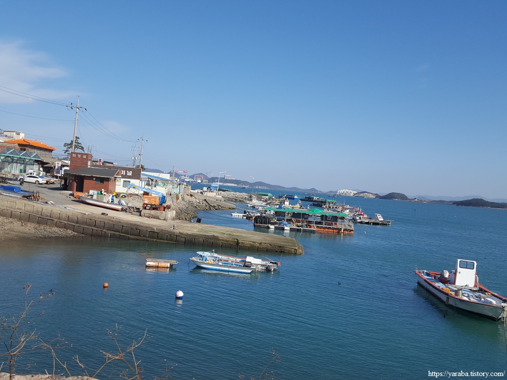 서해랑길 15코스가 시작하는 당포마을 앞으로는 77번 국도가 통과한다. 좌측은 조선소길로 화원반도 끝자락에 있는 대한조선으로 이어지는 길이다. 대한조선은 유조선을 전문으로 생산하는 중견 조선사로 최근에 불고 있는 조선업의 훈풍이 지속 가능한 환경으로 잘 다져지기를 바란다. 길은 우측 남동 방향, 목포로 향한다.